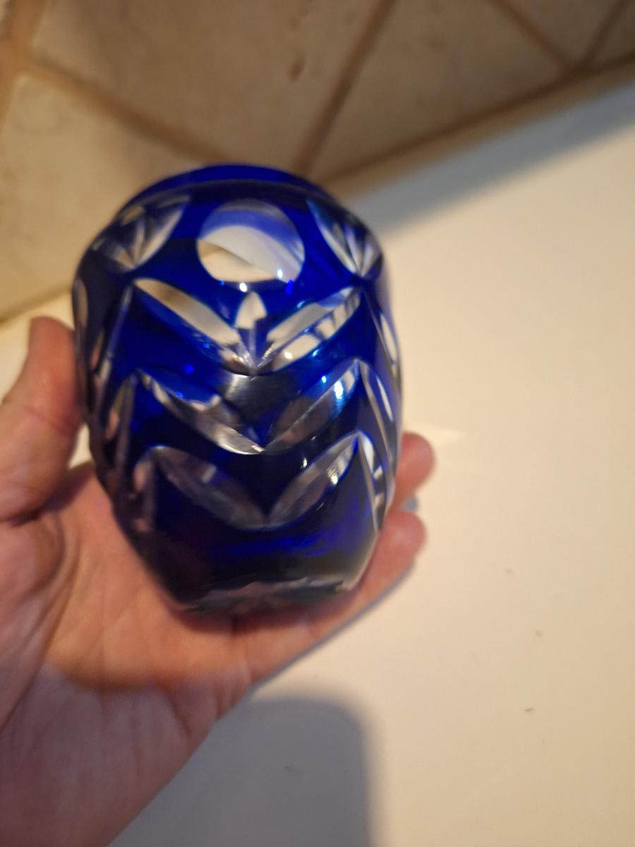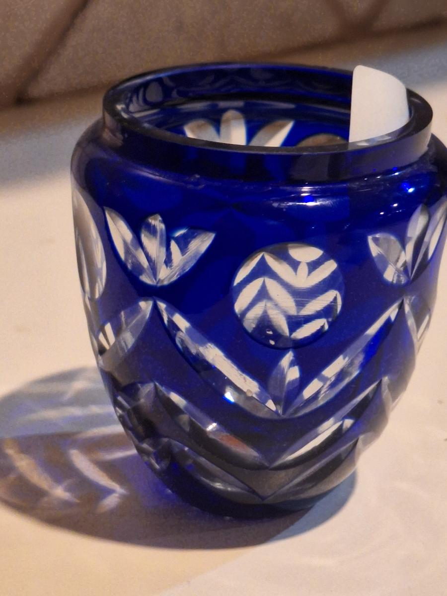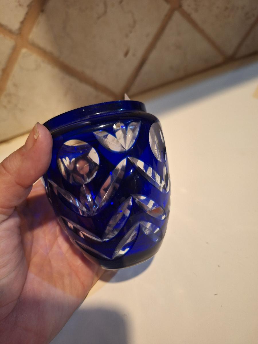 cobalt blue cut to clear base- maker unknown see all photos.