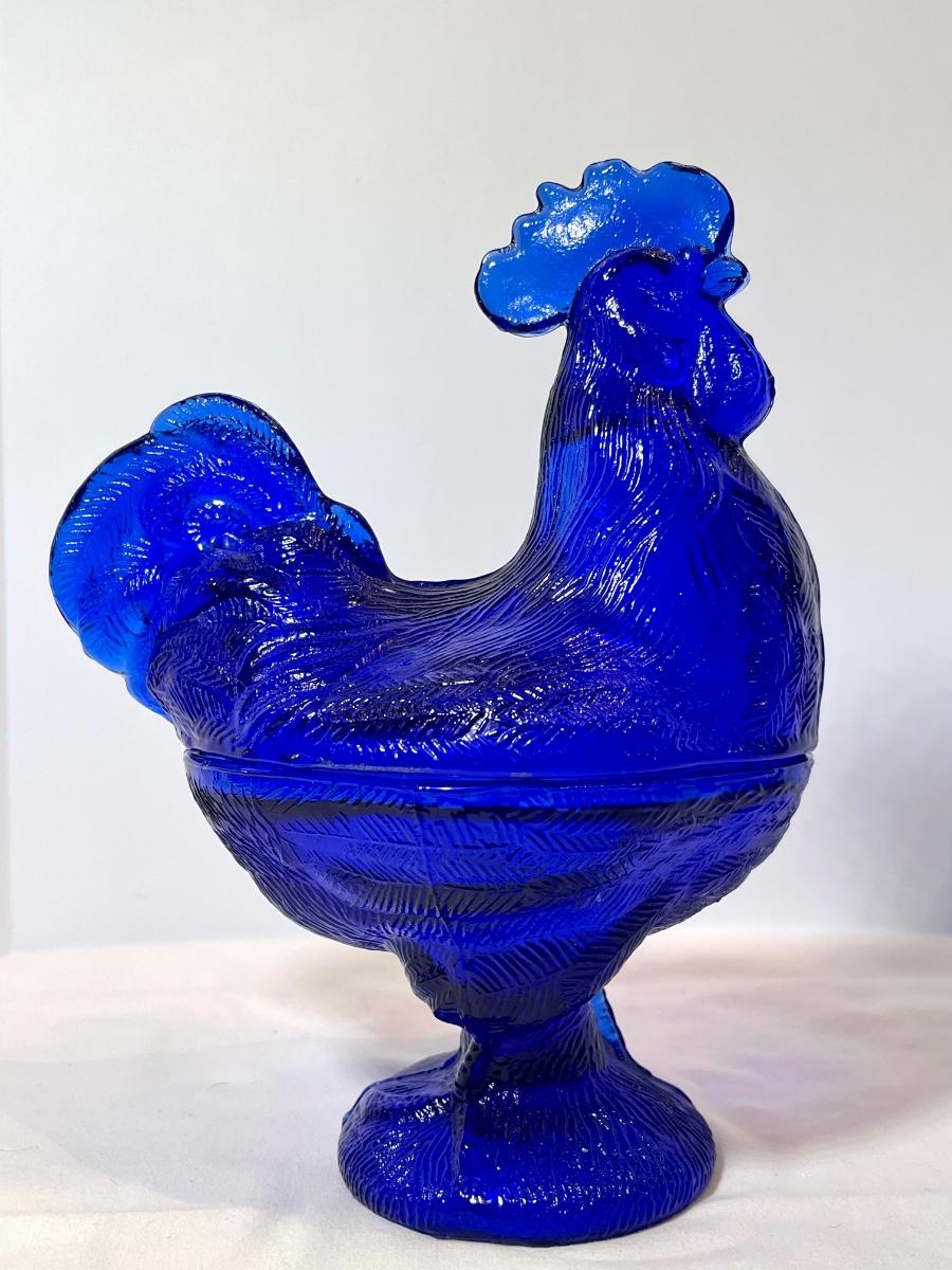 This cobalt cutie is the perfect addition to your chicken collection and a perfect blue to add a pop of color to your farmhouse decor. Perfect to fill with jellybeans for an Easter centerpiece or year round, I mean jellybeans are for all seasons, am I right? ˜Š I believe this is produced by Westmorland.