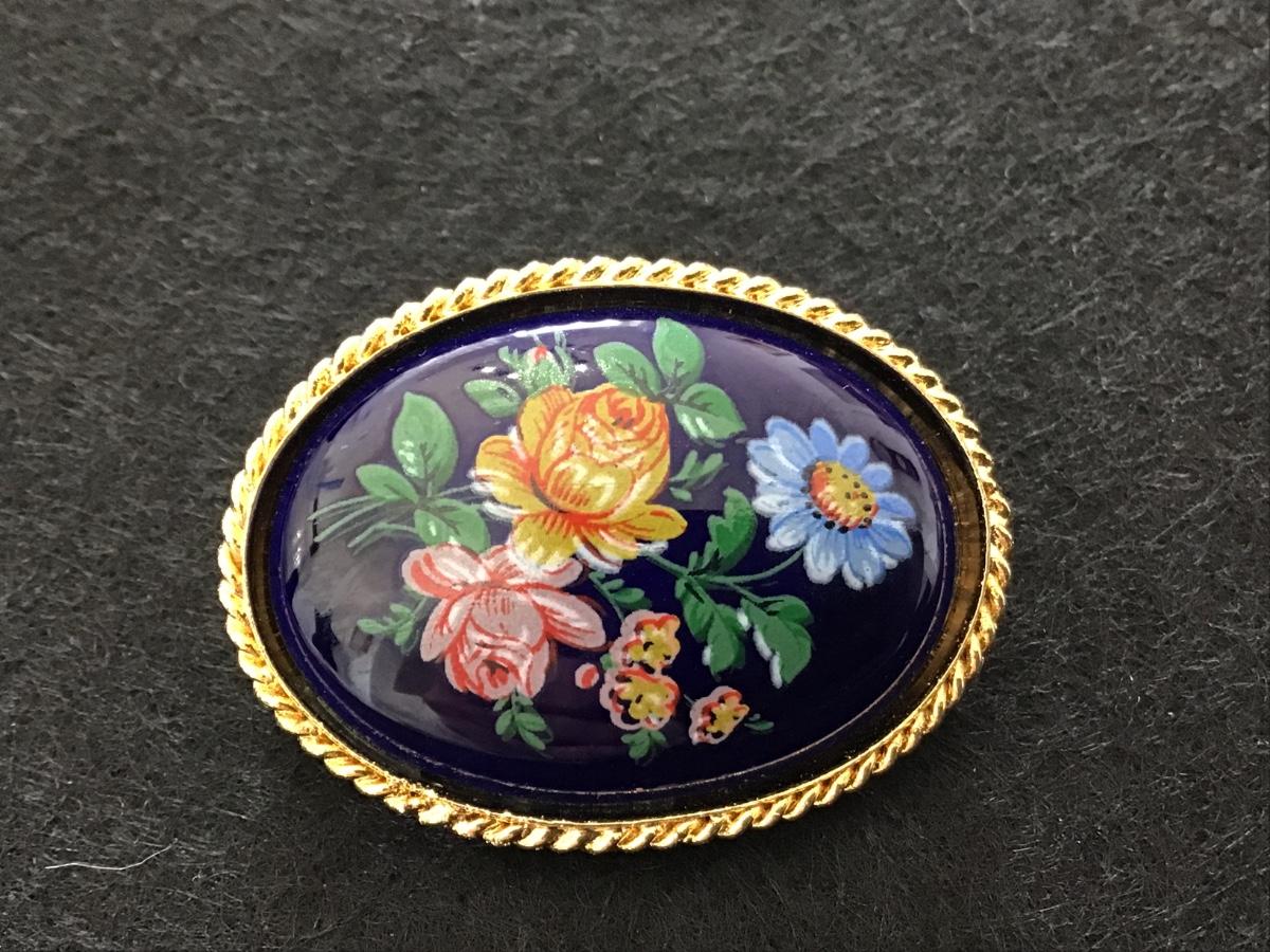 Cobalt Blue Flower Brooch ceramic/ Porcelain