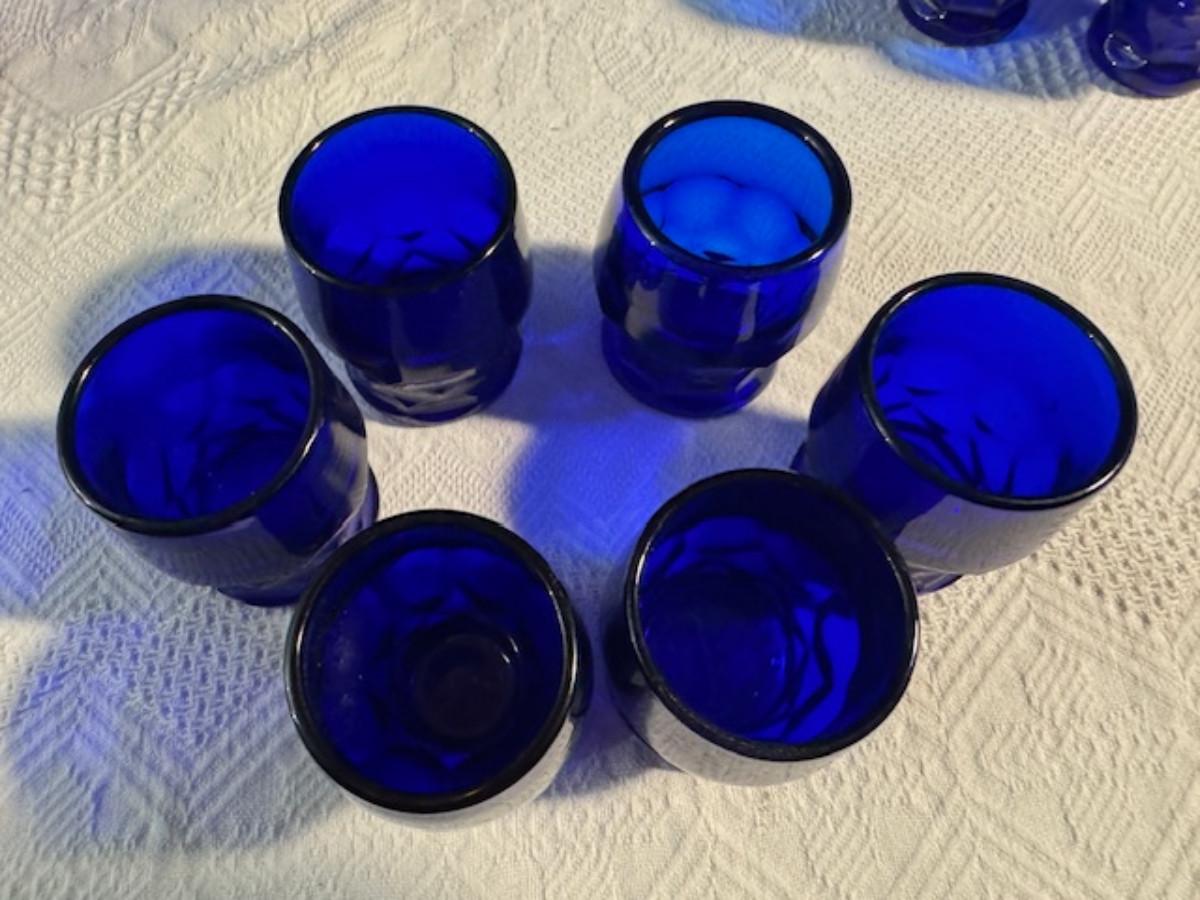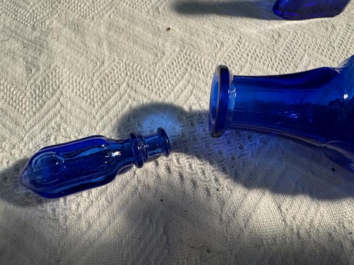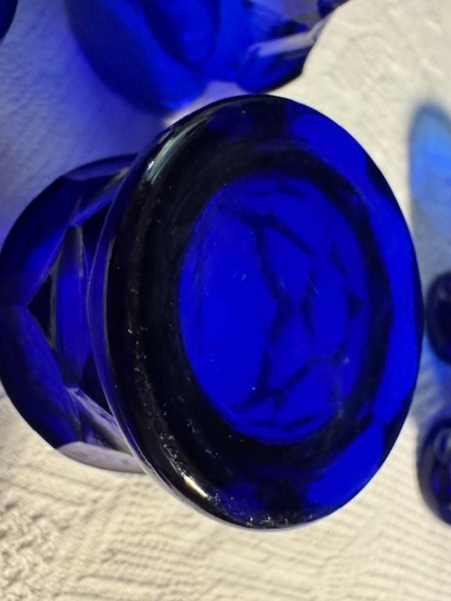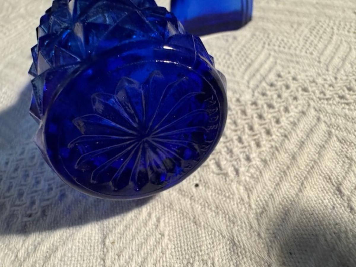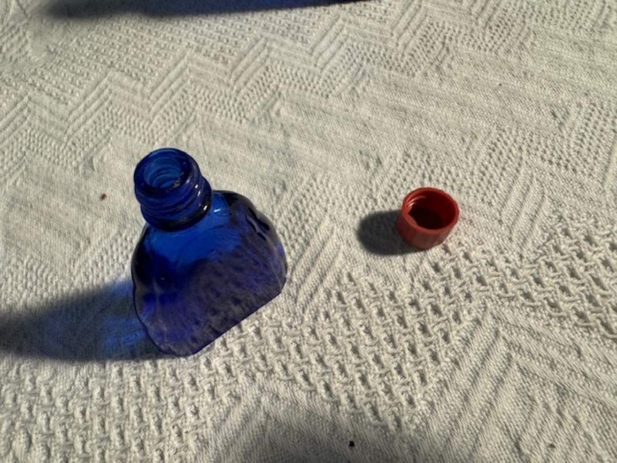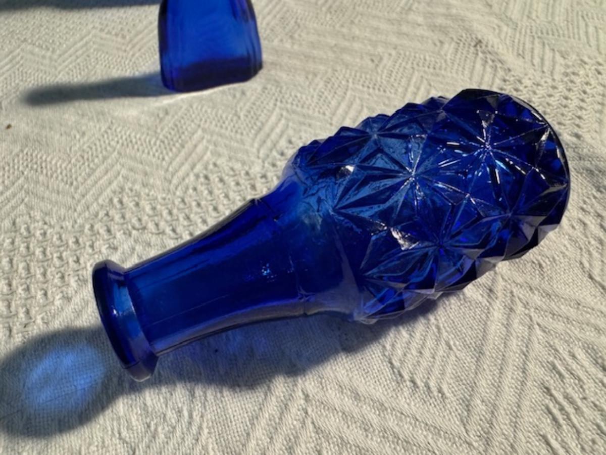 2 glasses 5.5" x 3 1/4", 5 bottles: 1. 5.5" x 1 1/4", 2. 4" x 1 1/4" with a 1 oz dipstick, 3. 2.5" x 1 1/4", 4. 4 3/4" x 2" Wakelee's, 5. 6 3/4" x 2" lid may not operate. Round salt and pepper 5.5" x 2" as is lids dented on top. Talcum powder bottles (1 bottle is as is - lid still works but it has a crack, see pics) 5" x 2 3/4". 8 glasses 3" x 1 3/4" (1 has a chip and one has rings), 6 glasses 2" x 1 3/4", and 4 glasses 2" x 2".