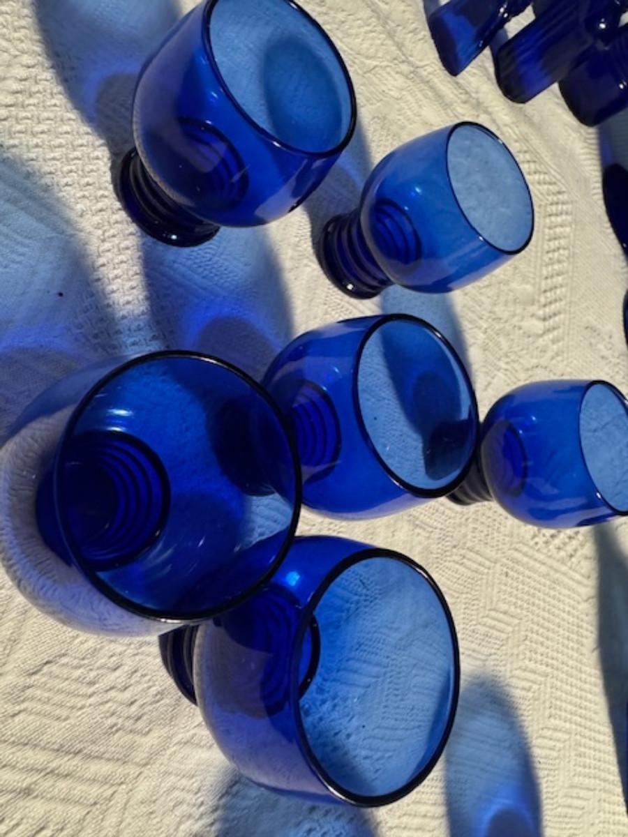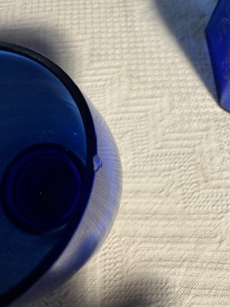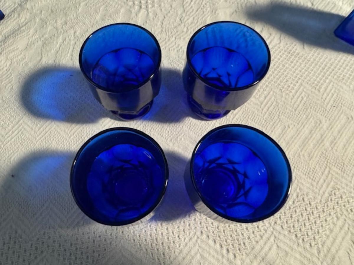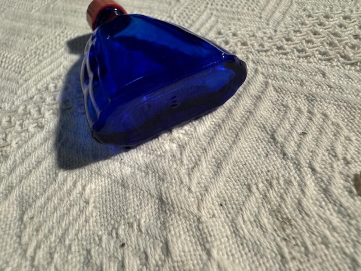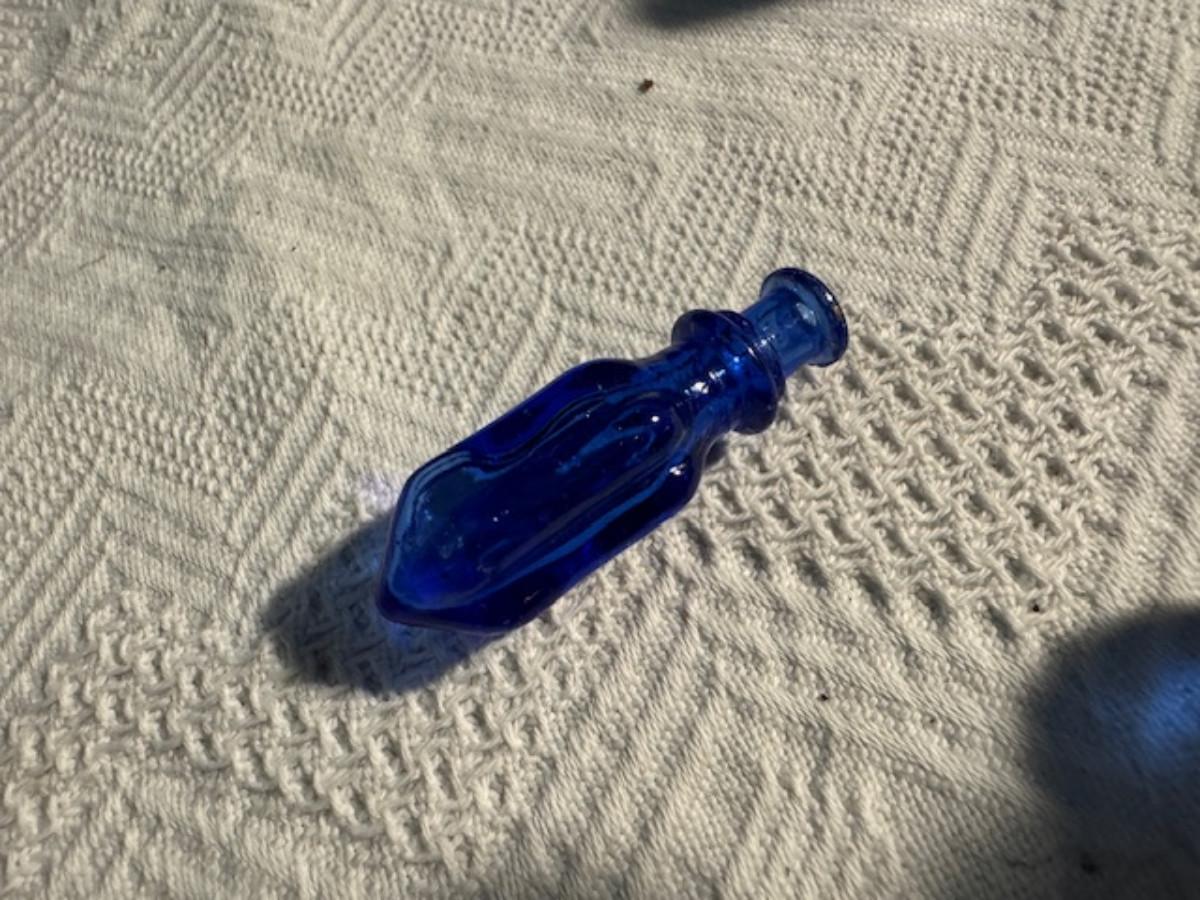 2 glasses 5.5" x 3 1/4", 5 bottles: 1. 5.5" x 1 1/4", 2. 4" x 1 1/4" with a 1 oz dipstick, 3. 2.5" x 1 1/4", 4. 4 3/4" x 2" Wakelee's, 5. 6 3/4" x 2" lid may not operate. Round salt and pepper 5.5" x 2" as is lids dented on top. Talcum powder bottles (1 bottle is as is - lid still works but it has a crack, see pics) 5" x 2 3/4". 8 glasses 3" x 1 3/4" (1 has a chip and one has rings), 6 glasses 2" x 1 3/4", and 4 glasses 2" x 2".