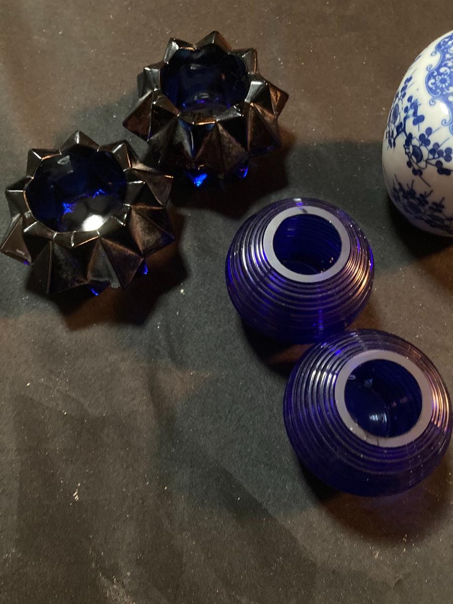 Cobalt Blue Glass and Porcelain Ginger Jar Lot