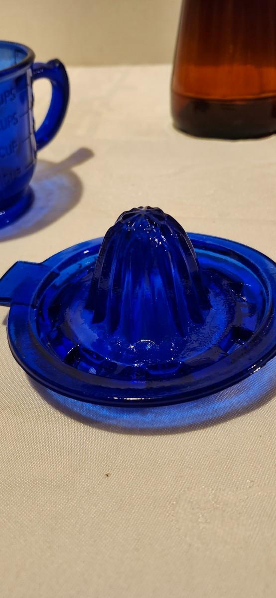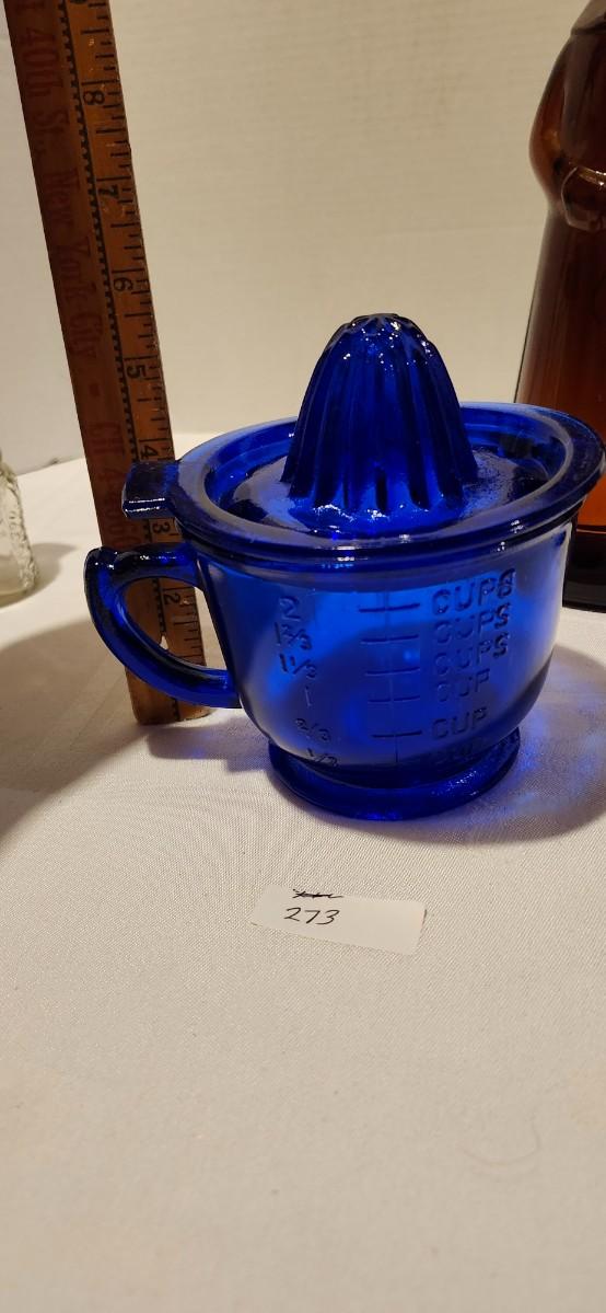 Cobalt Blue Glass Juicer Two Cup Measuring Mixing Bowl Retro Depression 2 Piece