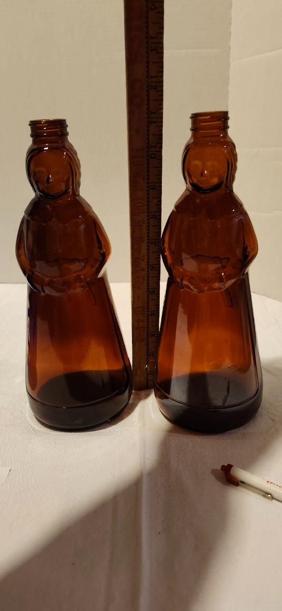 2 MRS. BUTTERWORTH'S 10" Amber Glass Syrup Bottle Butter-Worth's 60' 70's Era
