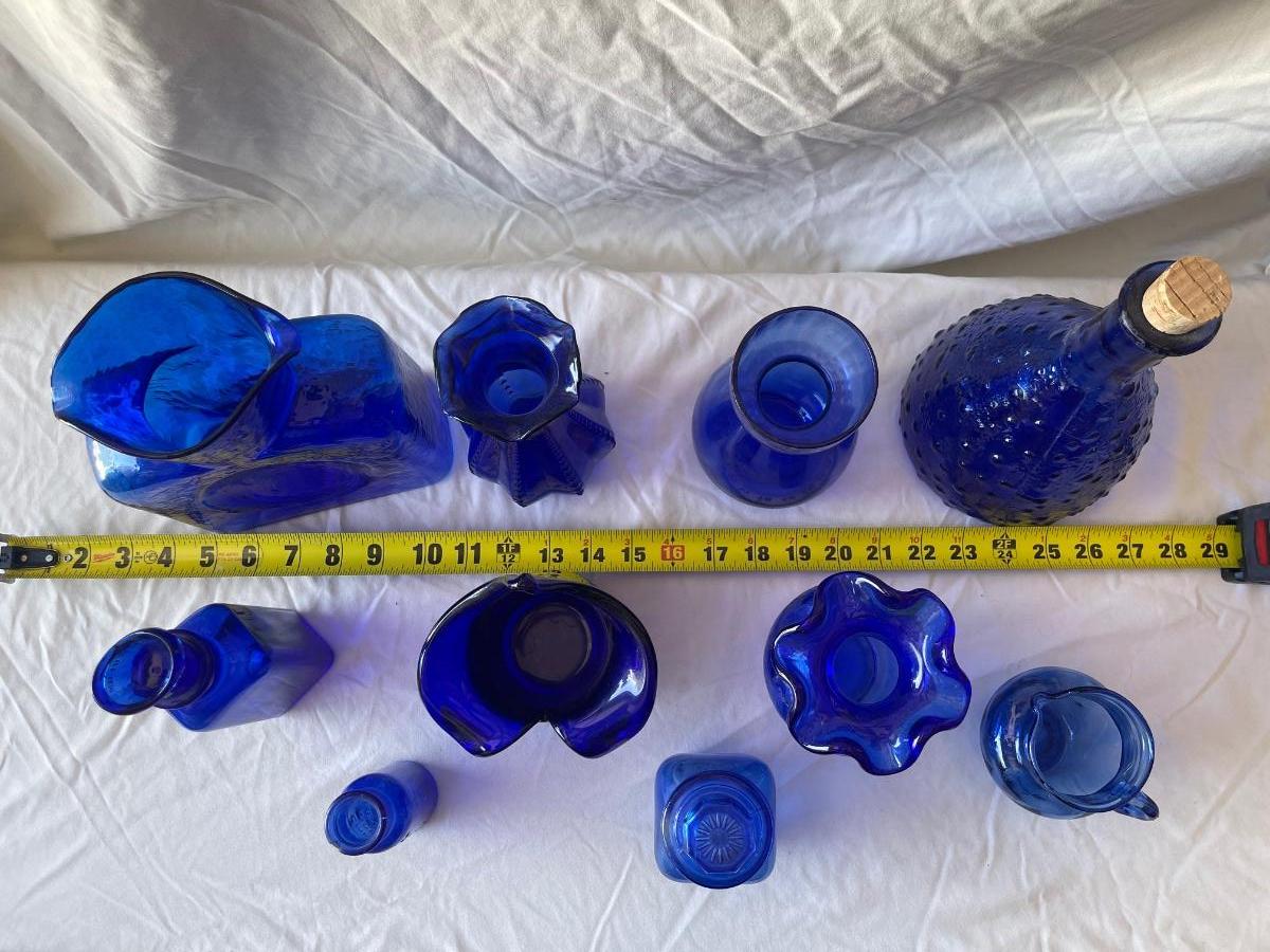 Cobalt Blue Glass, Various pieces (Lot of 10)