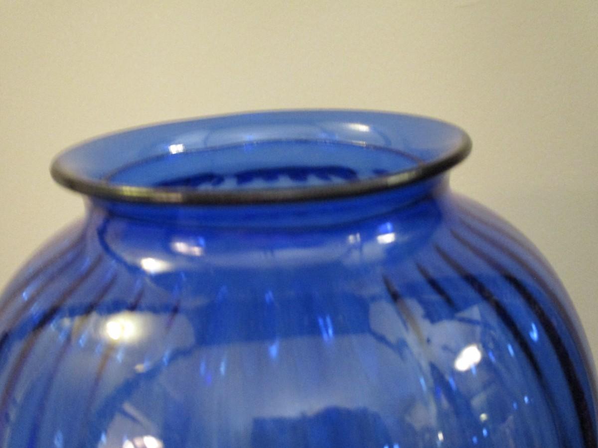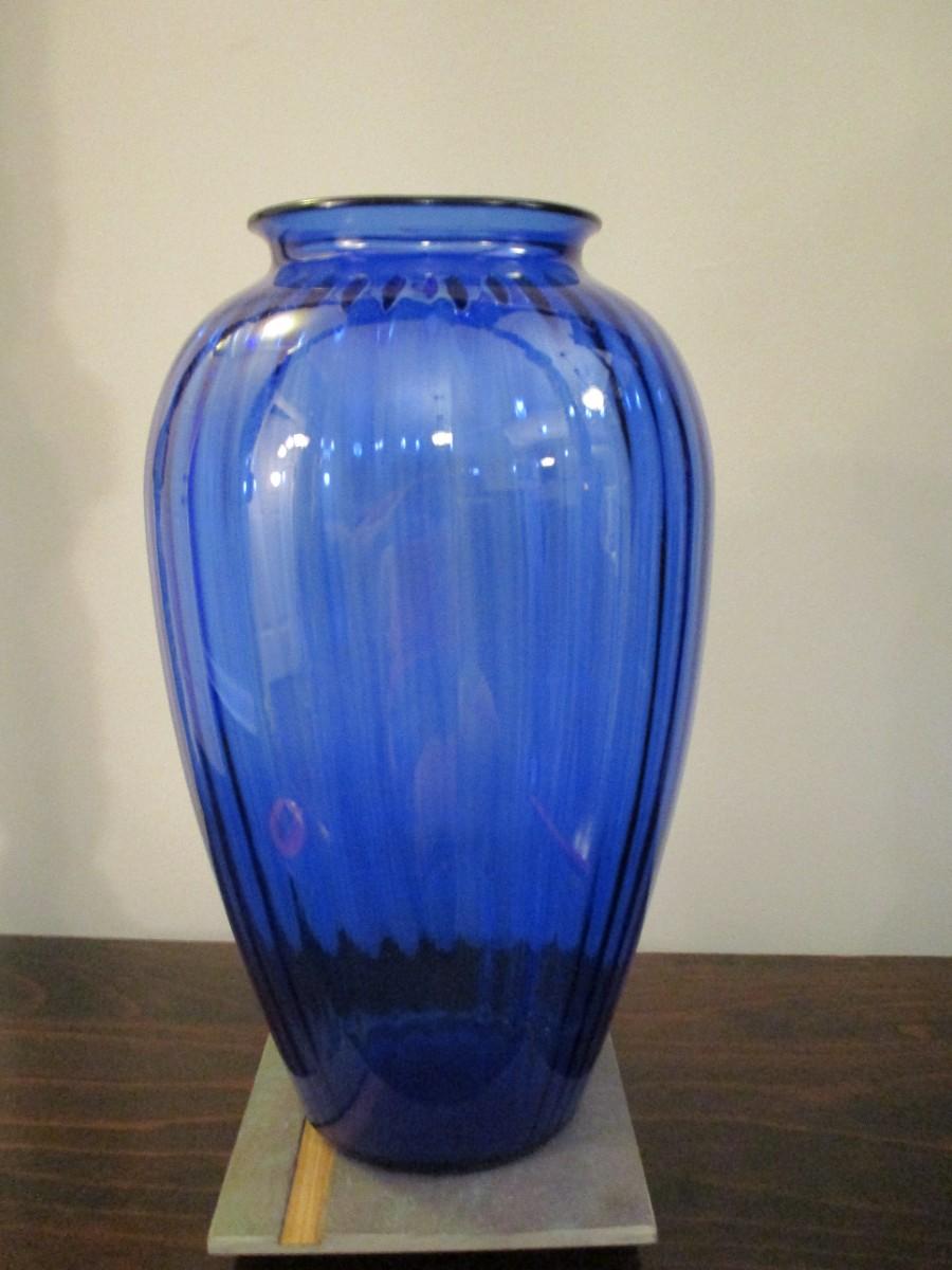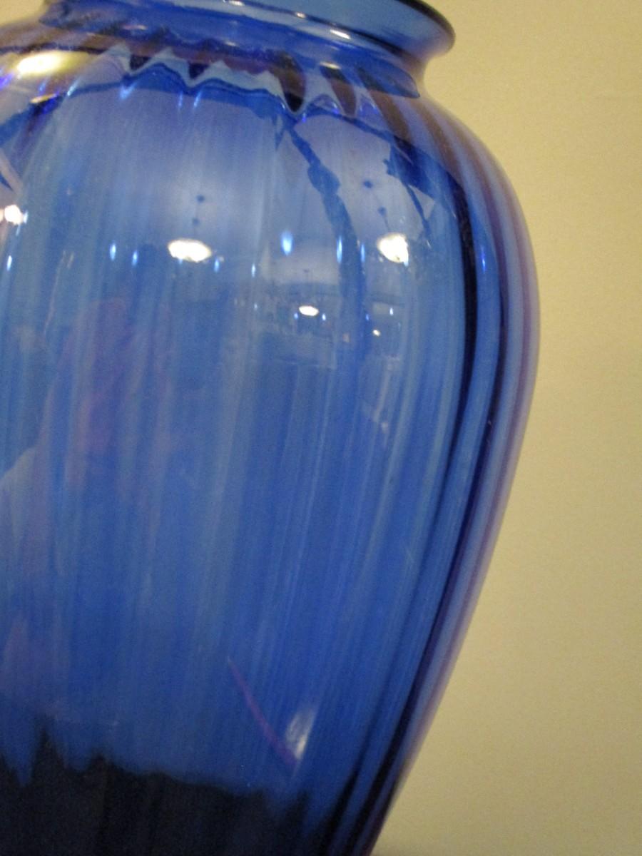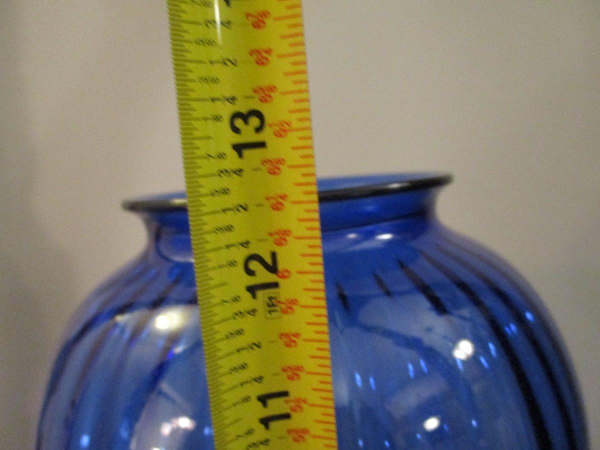 Cobalt Blue Glass Vase Ribbed 12 1/2" Tall