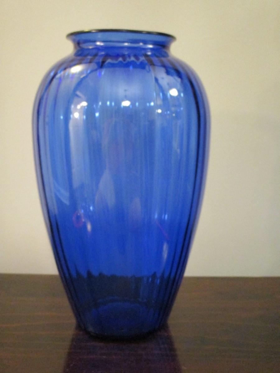 Cobalt Blue Glass Vase Ribbed 12 1/2" Tall Anchor Hocking
