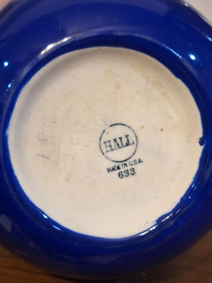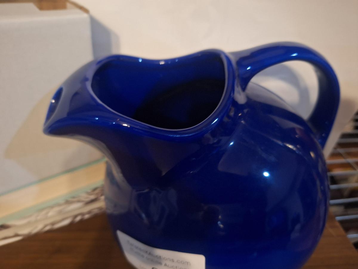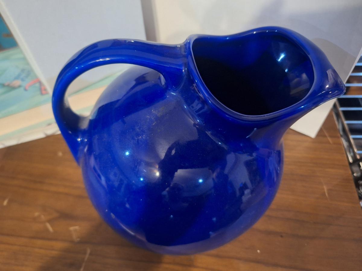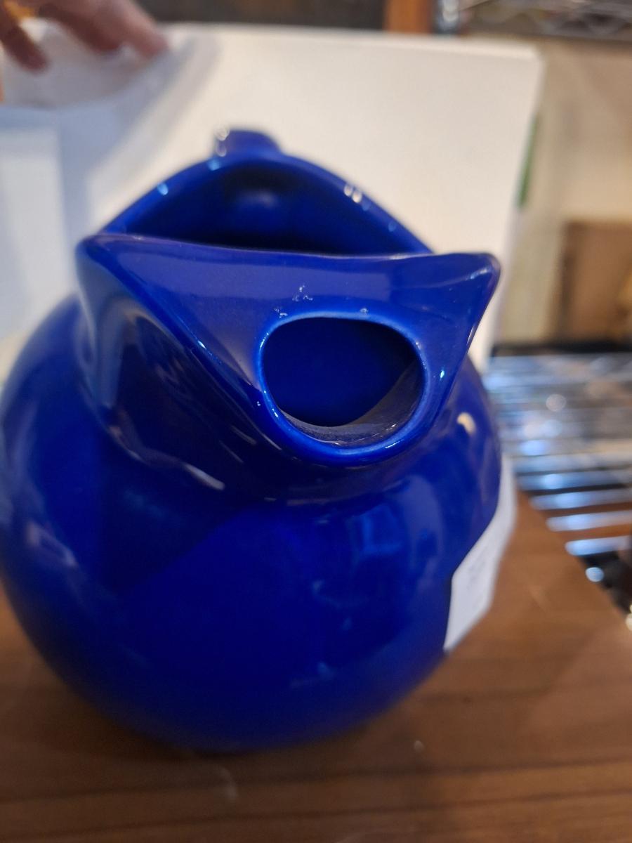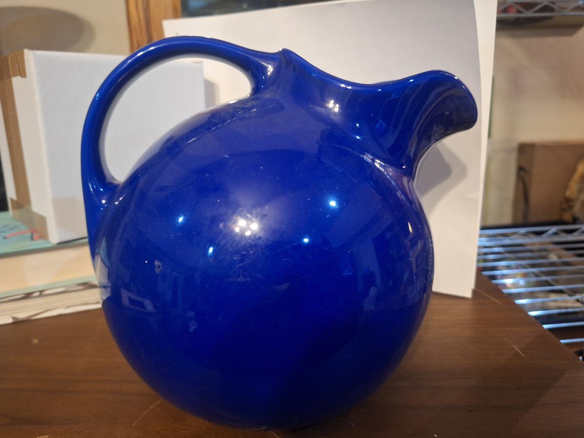 Cobalt blue pitcher by Hall Pottery- vintage "ball" style pitcher Art Deco