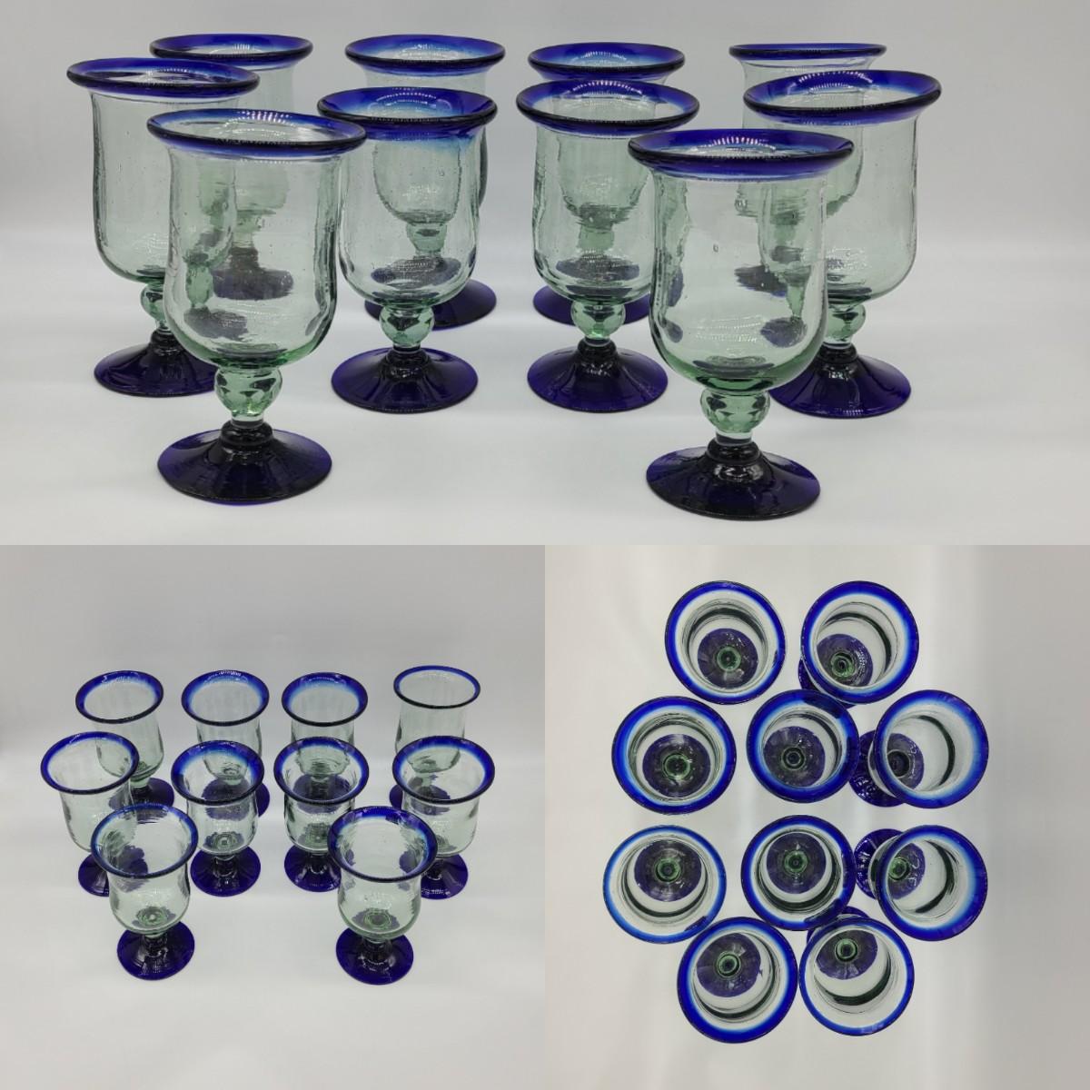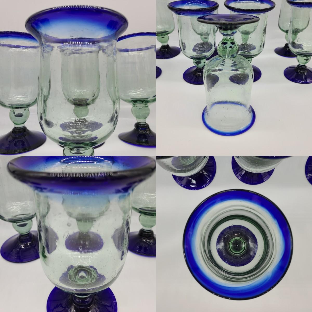 Cobalt Blue Rimmed, Hand-Blown Mexican  Tea/Water Glasses