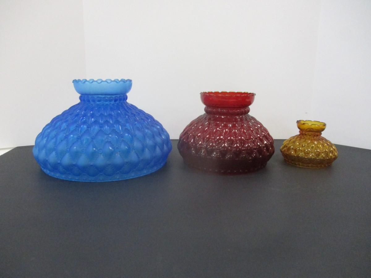 Blue Satin Glass Diamond Quilted Lamp Shade - Ruby Red Aladdin Rayo Diamond Quilt Lamp Shade - Amber Glass Quilted Hurricane Shade #2