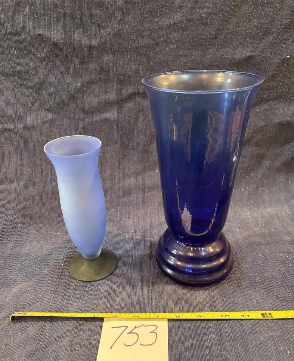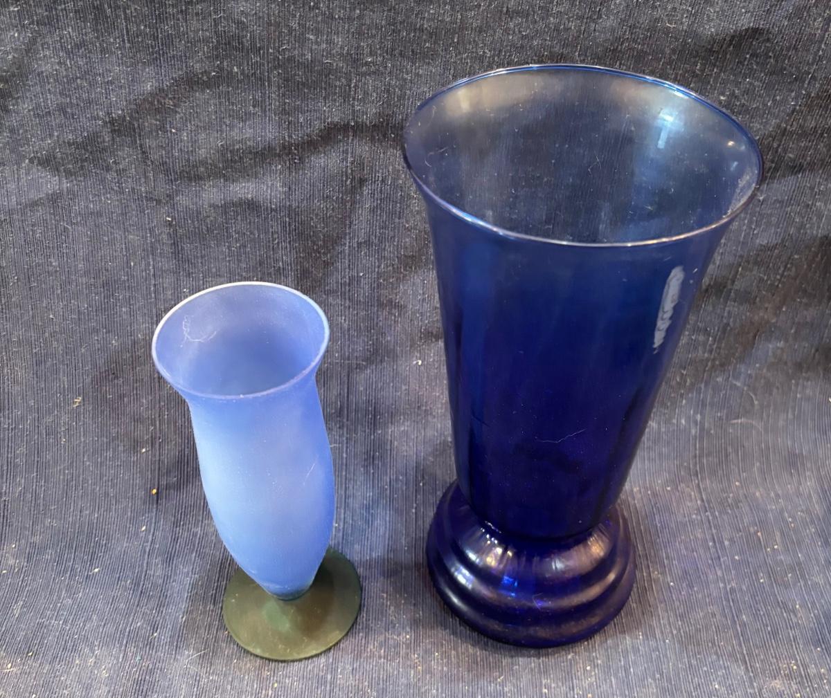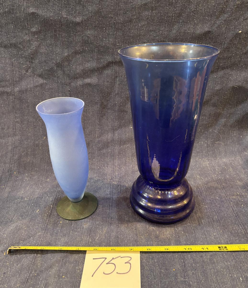 Cobalt Blue Vase and Frosted Blue Glass Vase