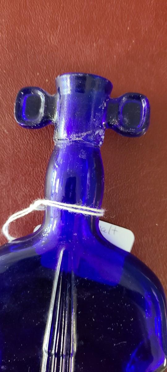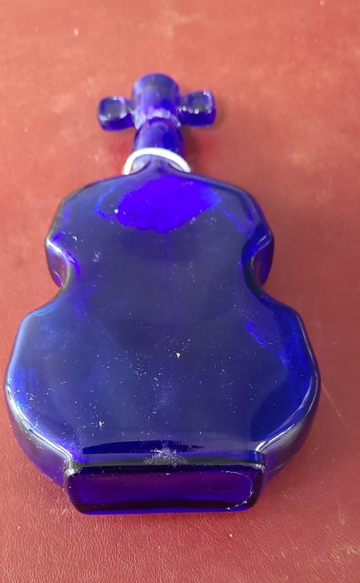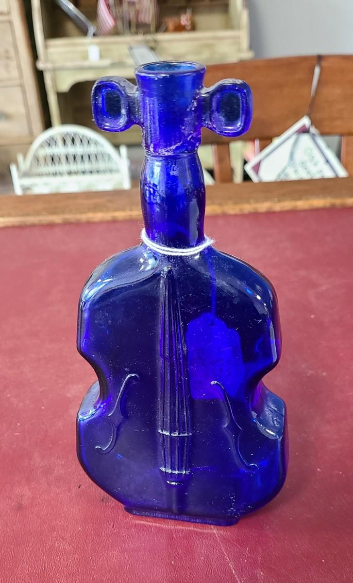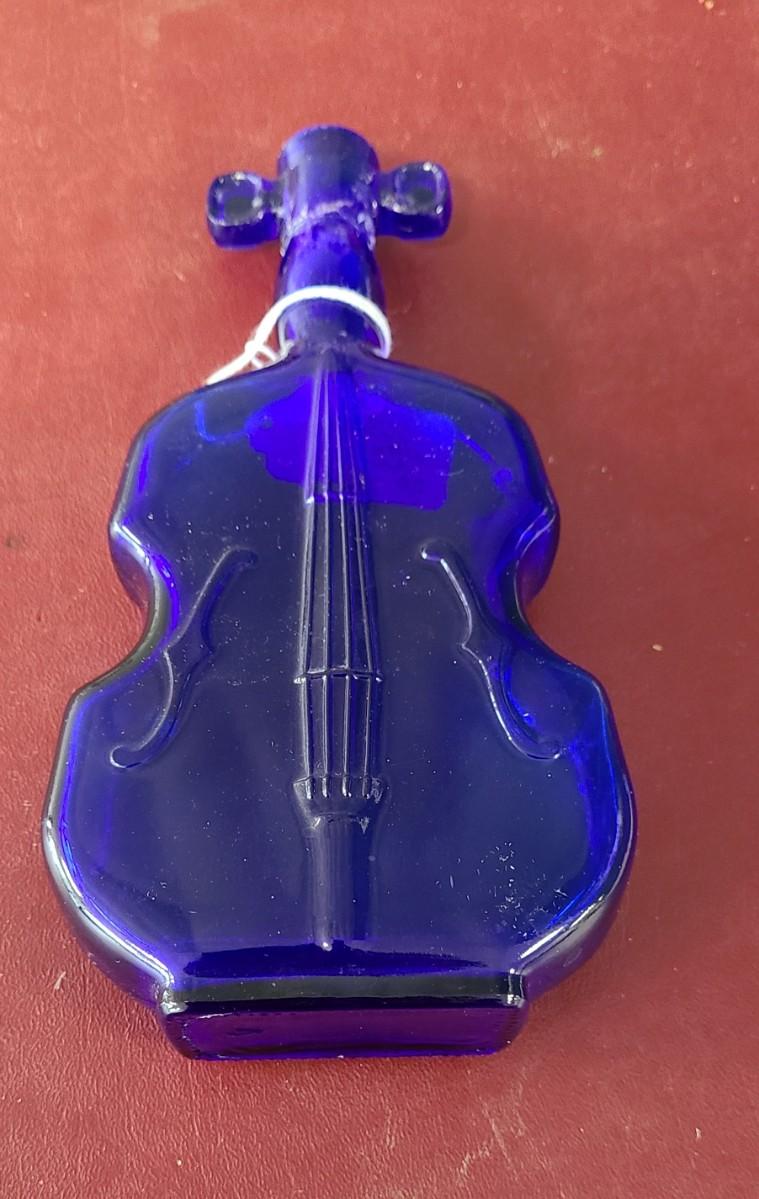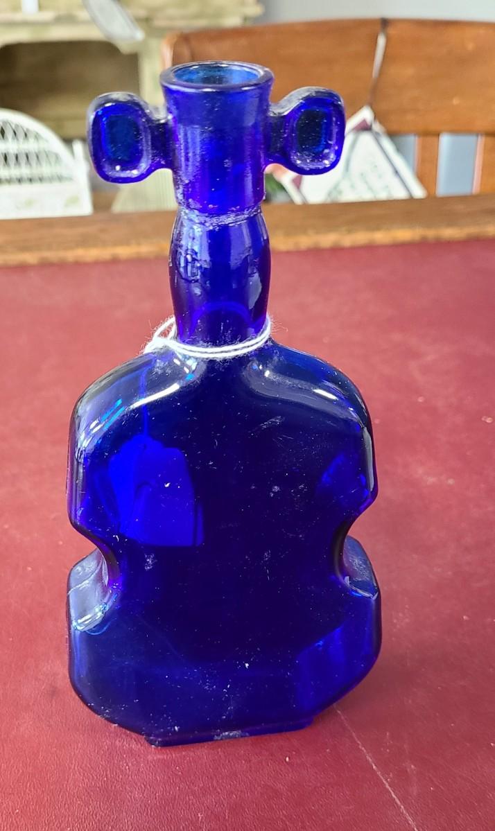 Cobalt Blue Violin Bottle - 8 inches tall - repaired in neck (see picture)