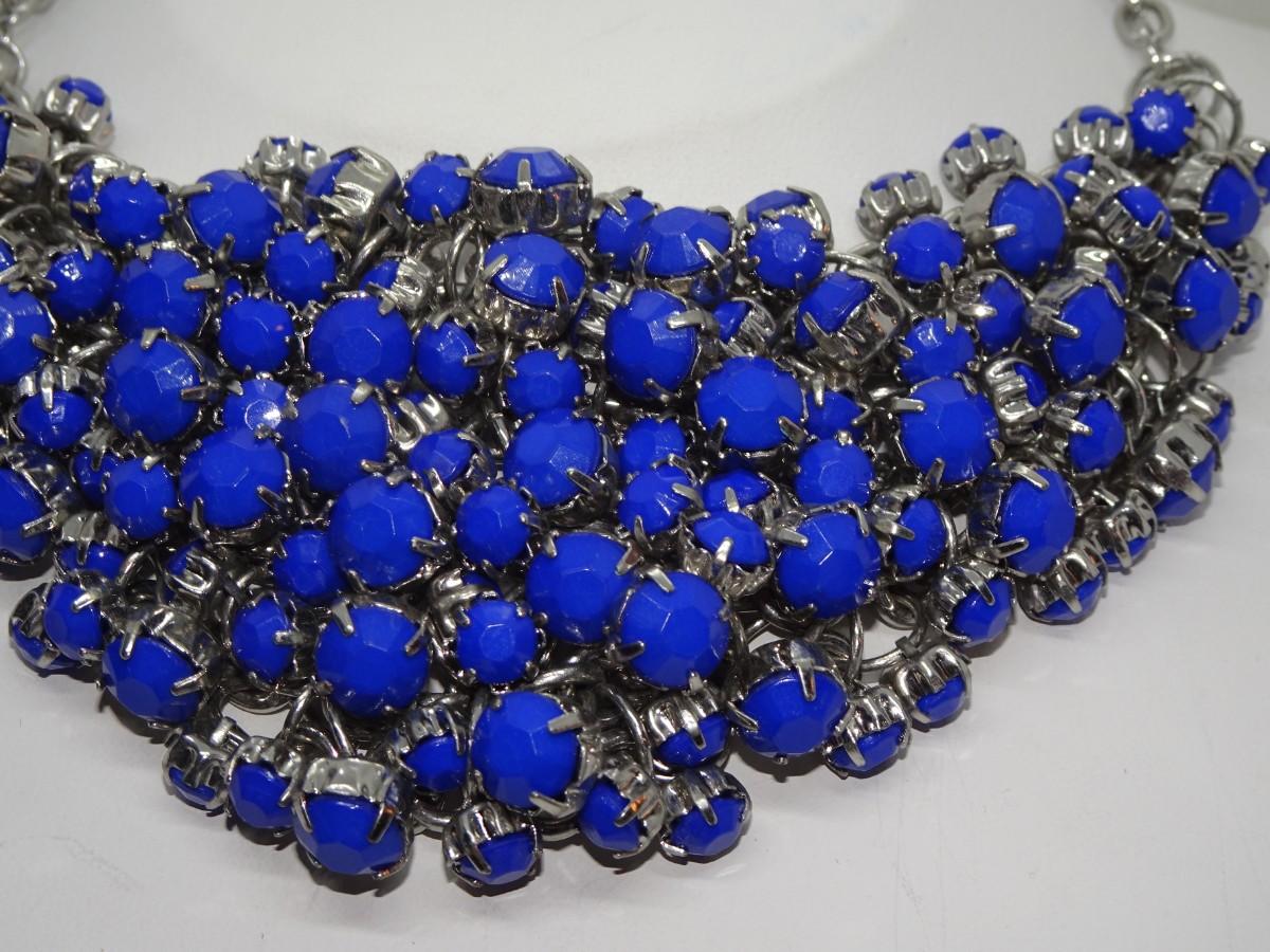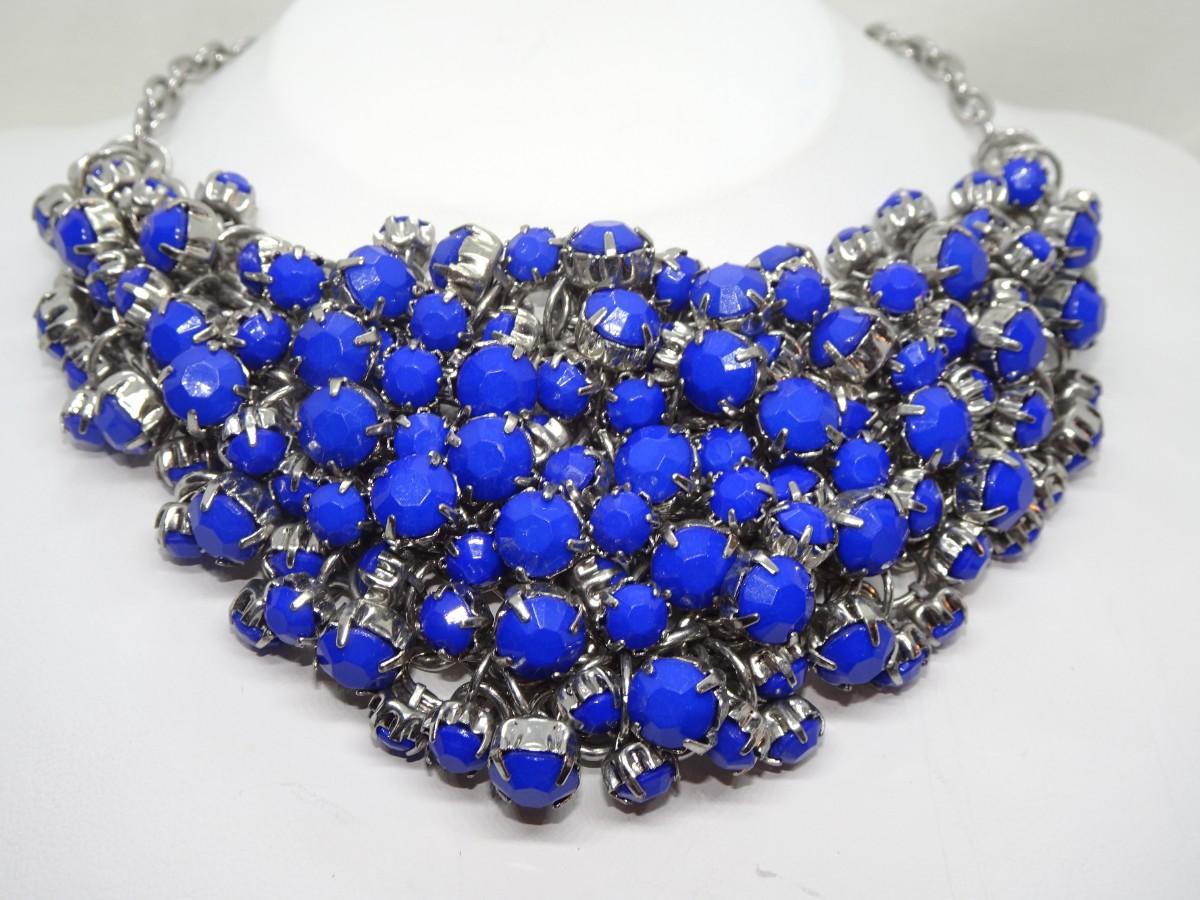 Cobalt Brilliant Blue Chain Meal Cluster Beaded Necklace