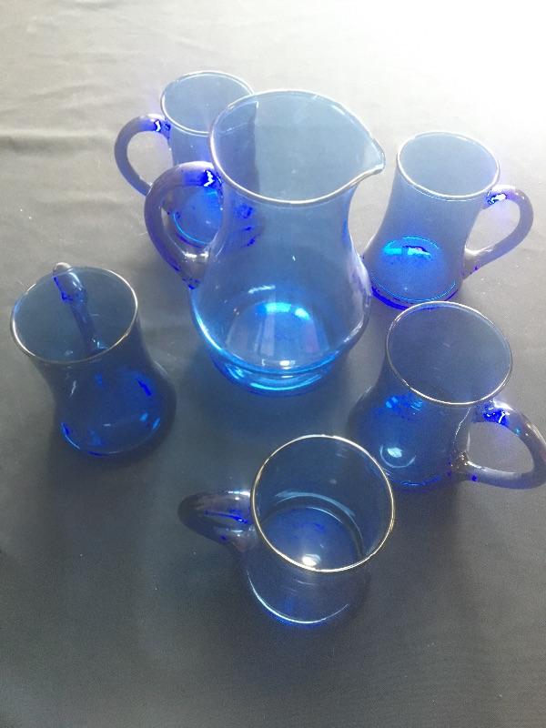 Cobalt Glass Pitcher and Mugs Set with 6pcs. LOT 2