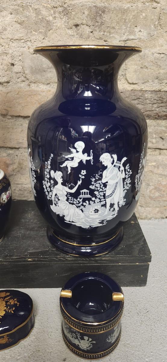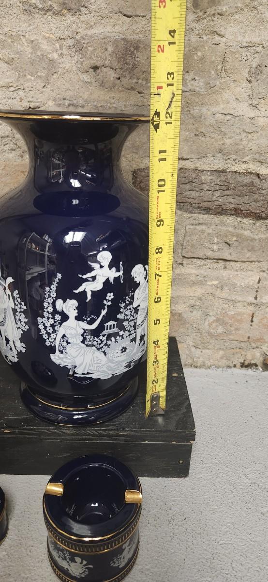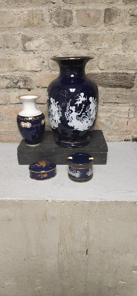 Big cobalt vase and ashtray, gorgeous vase and small trinket box
