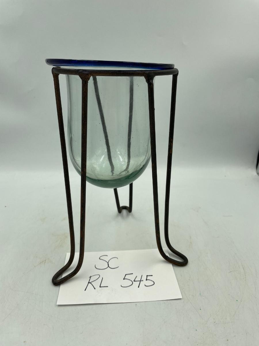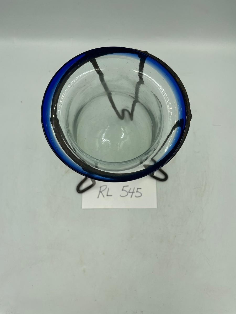 Cobalt rim clear glass vase in stand