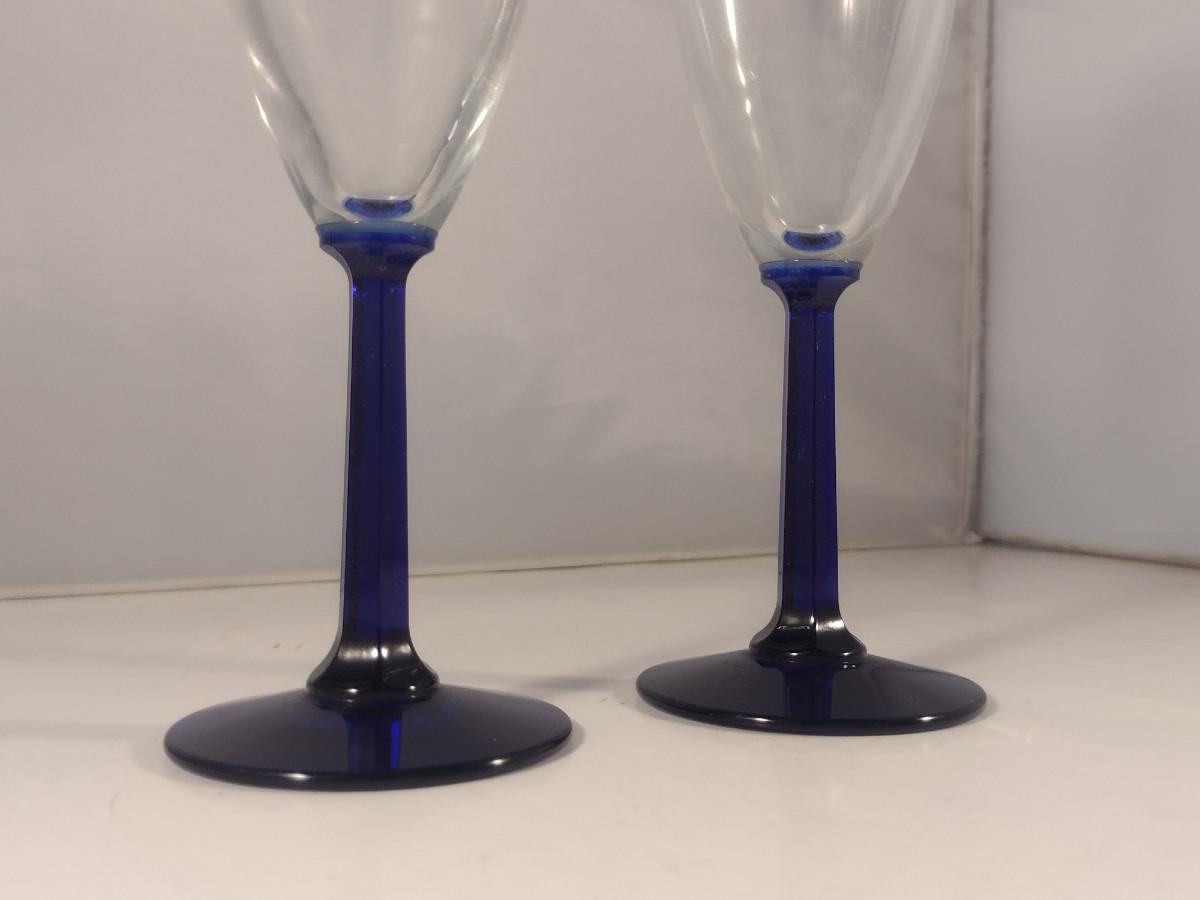 Cobalt Stem Champagne Flutes/Wine Goblets- 7 Pieces