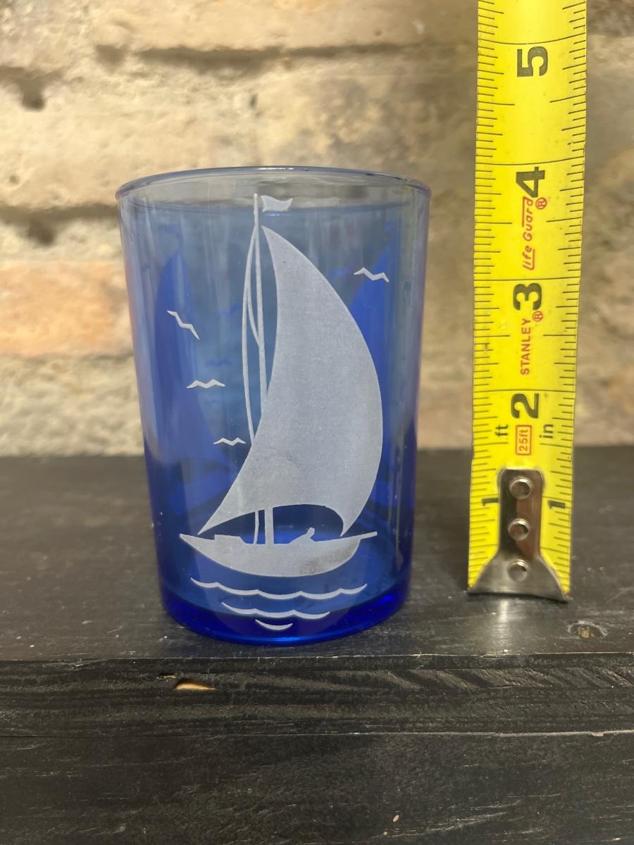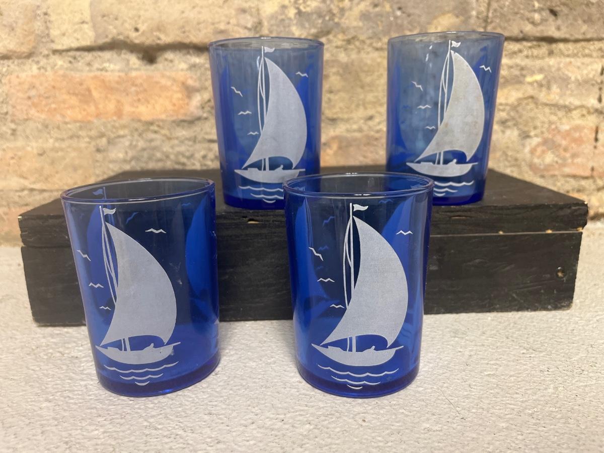 Set of four cobalt ships tumblers -Hazel Atlas Sportsman series