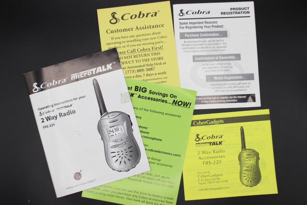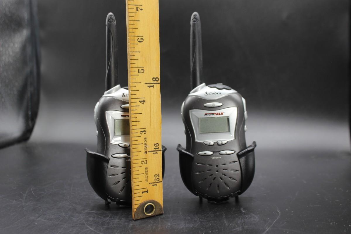 Pair of Cobra Microtalk two-way radios. Come with instructions and belt clips. Need new batteries.