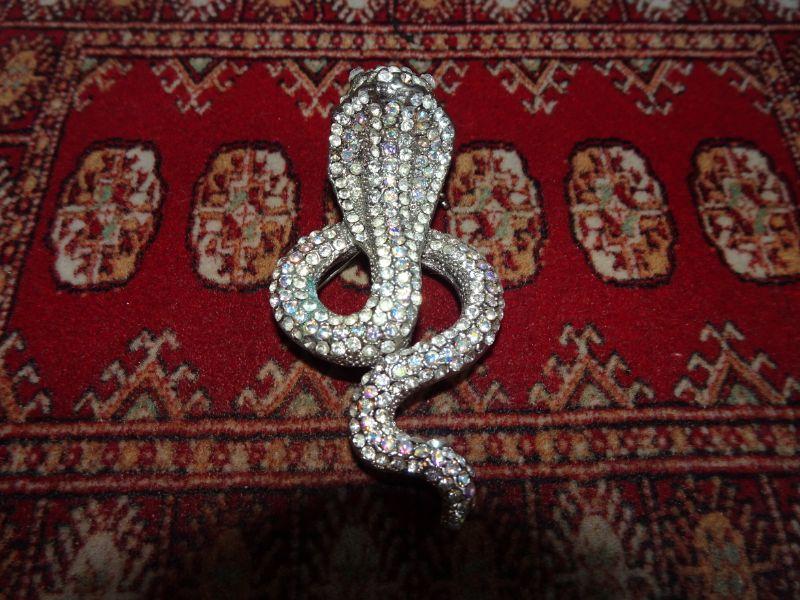 Cobra Snake Brooch Pin, Rhinestone Snake Pin
