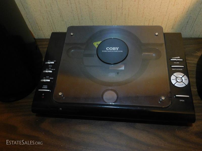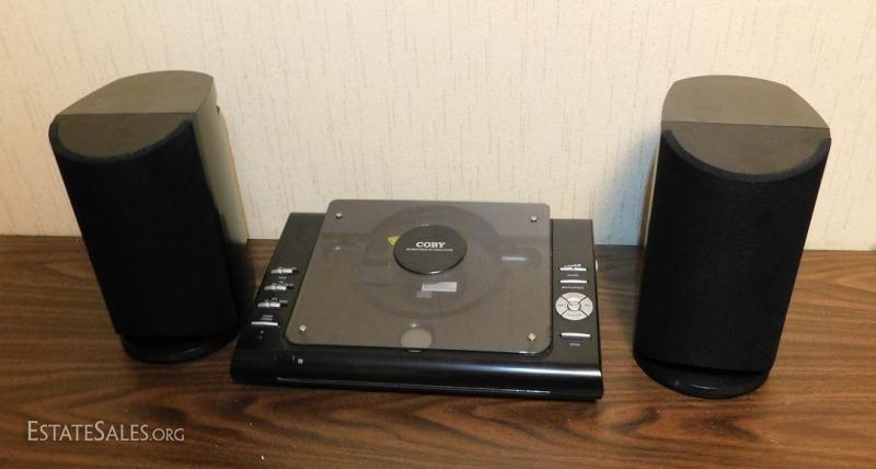 Coby CX-CD377 Micro CD Stereo System with Two Speakers. Seems to be in working order.