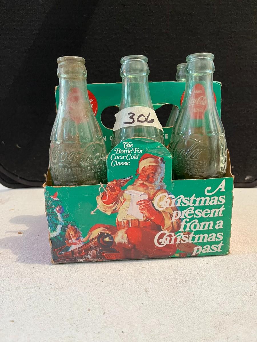 Coca Cola 6-Pak Non-Refillable Glass Bottles in Santa Christmas Coke Case