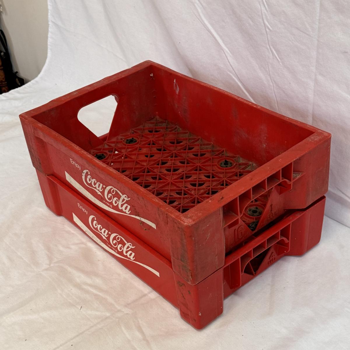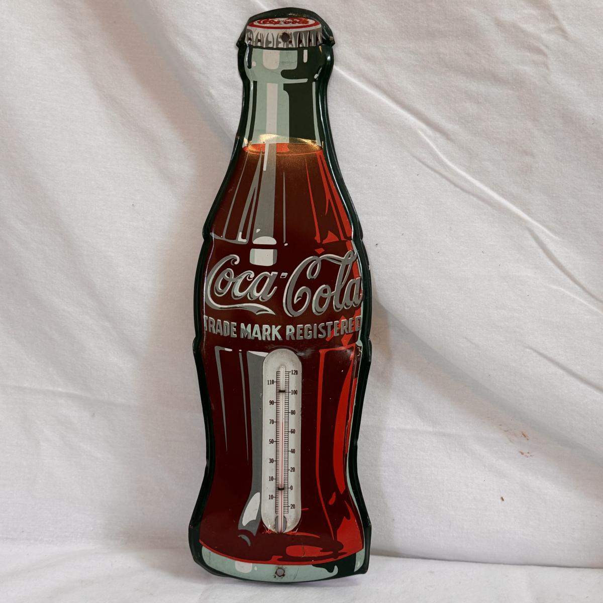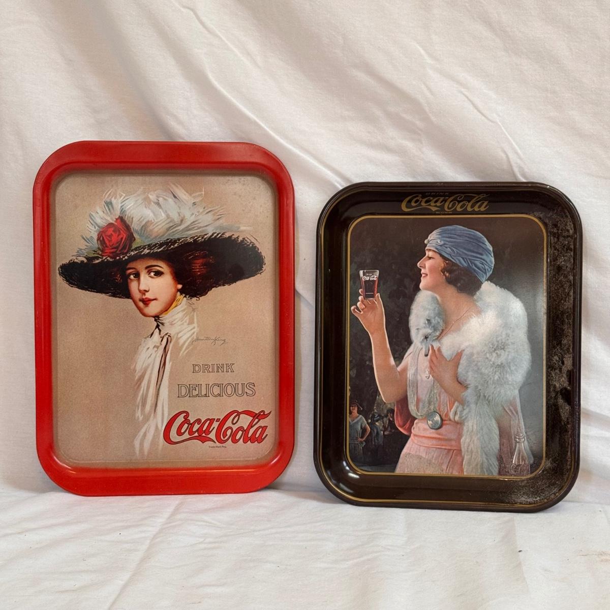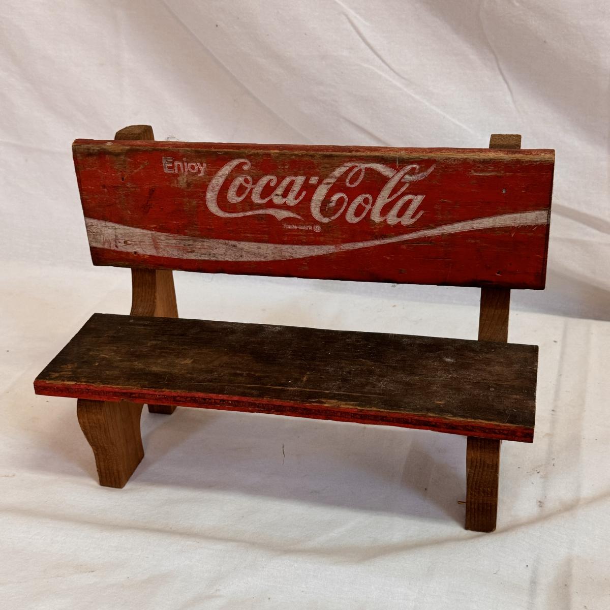 This lot includes a handful of unique Coca Cola collectibles. You’ll find two plastic crates, three different thermometers, a calendar from the 70s, small wooden bench for doll, small wooden wagon, several trays, playing cards, bottle openers, and more. You’ll also find a set of six glasses. The largest items are the plastic crates that individually measure 18.5” x 12” x 5.5”H. Shipping available.