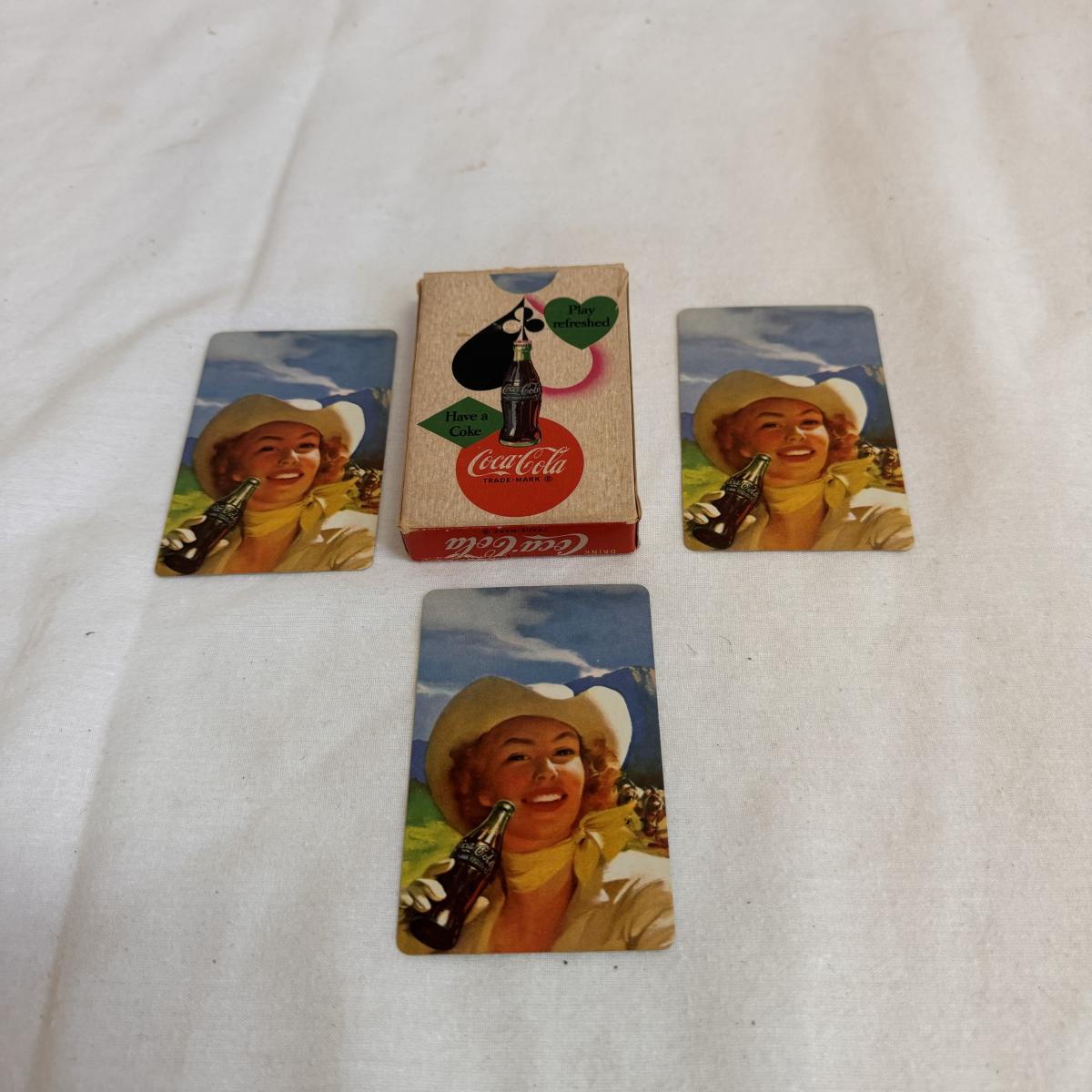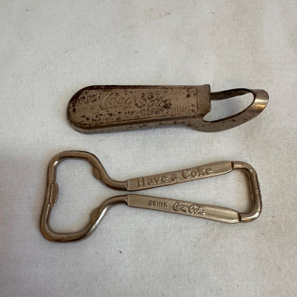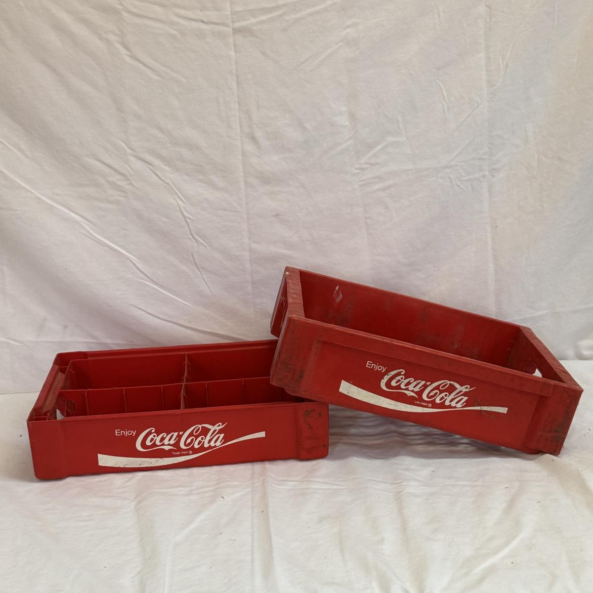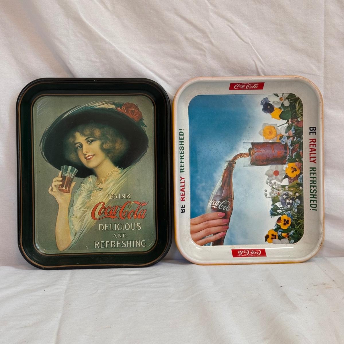 This lot includes a handful of unique Coca Cola collectibles. You’ll find two plastic crates, three different thermometers, a calendar from the 70s, small wooden bench for doll, small wooden wagon, several trays, playing cards, bottle openers, and more. You’ll also find a set of six glasses. The largest items are the plastic crates that individually measure 18.5” x 12” x 5.5”H. Shipping available.