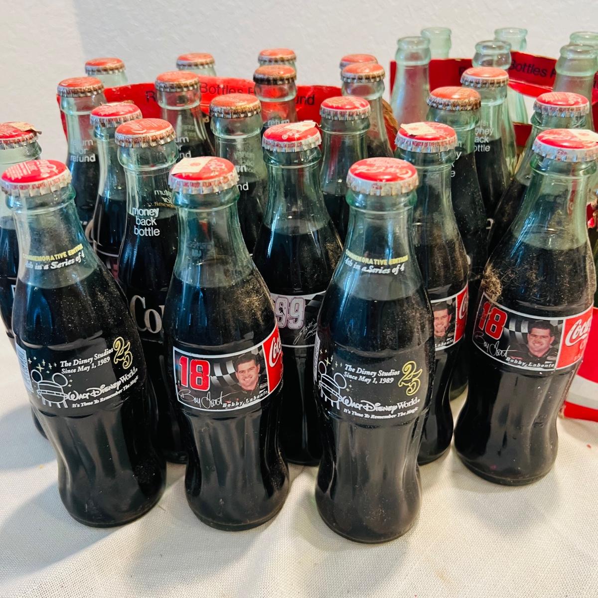 Collection includes 22 full, unopened bottles and 26 empty bottles, with three carrying cases. Commemorative edition bottles include JeffBurton, Walt Disney 25, Bobby Labonte, Stone Mountain and Super Bowl XXXIII.
