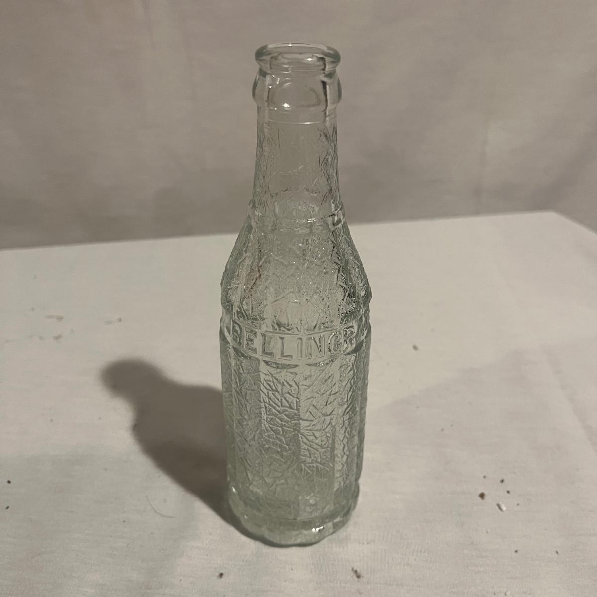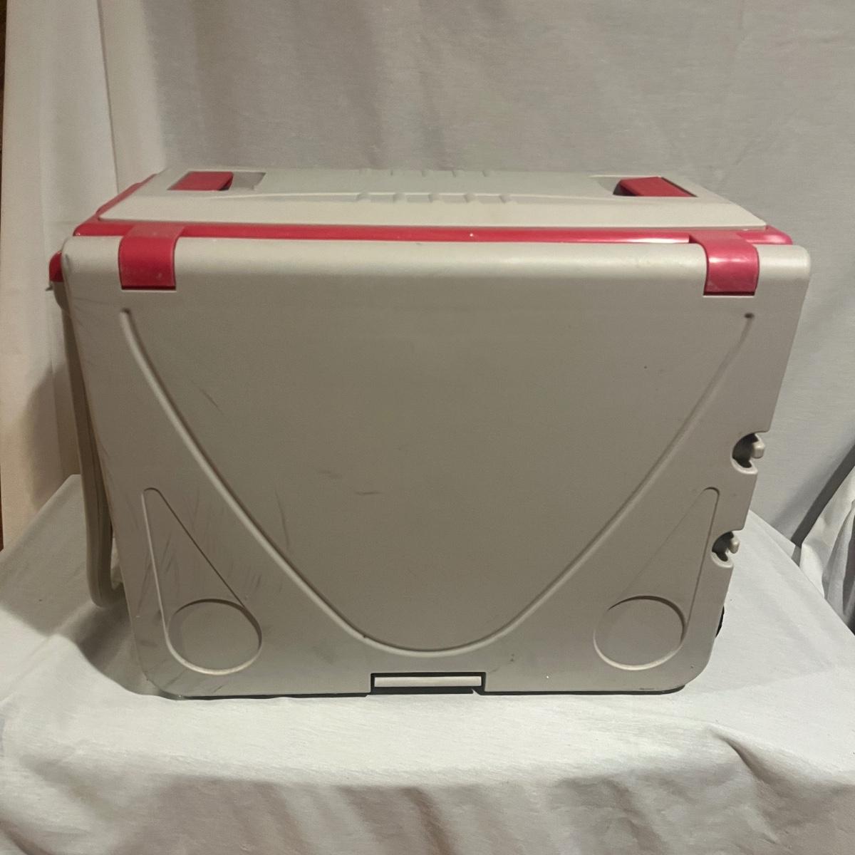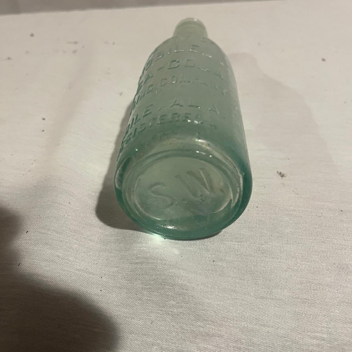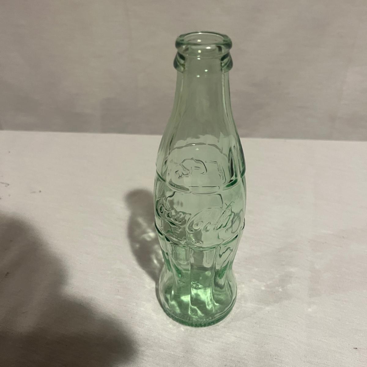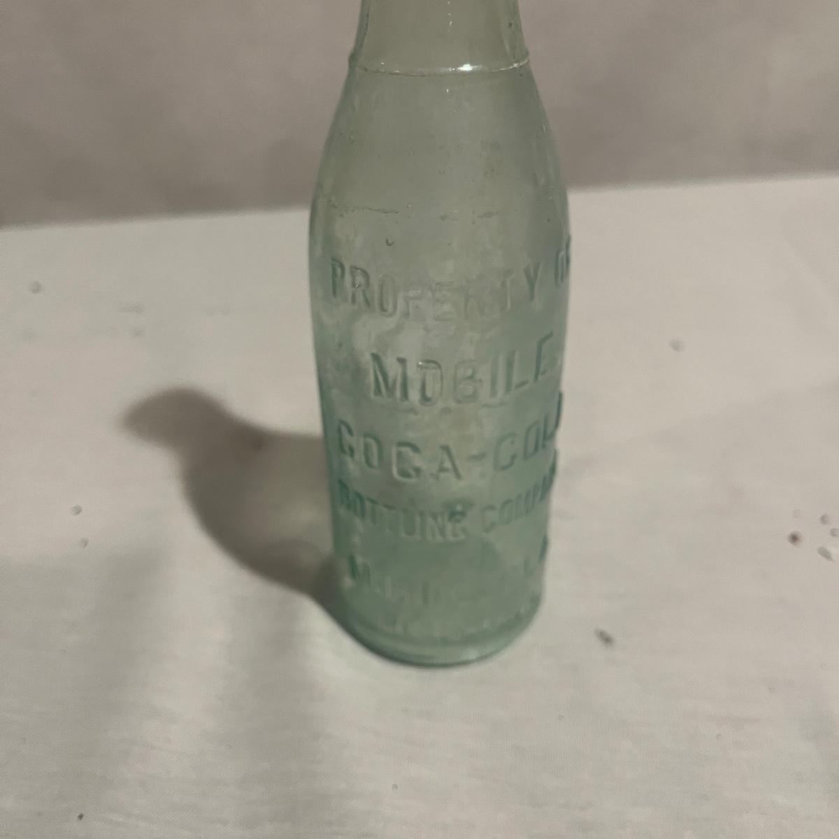 Lot includes a plastic Rolling Coca Cola cooler with two built in drop leafs that hold two small chairs. Also includes four bottles with two marked Coca Cola, Bellingrath Beverages bottle and a round bottom unmarked bottle. Cooler measures 36” x 20” x 14”H when open and 12” x 20” x 14”H when drop leafs are closed.