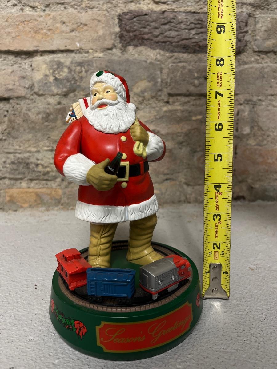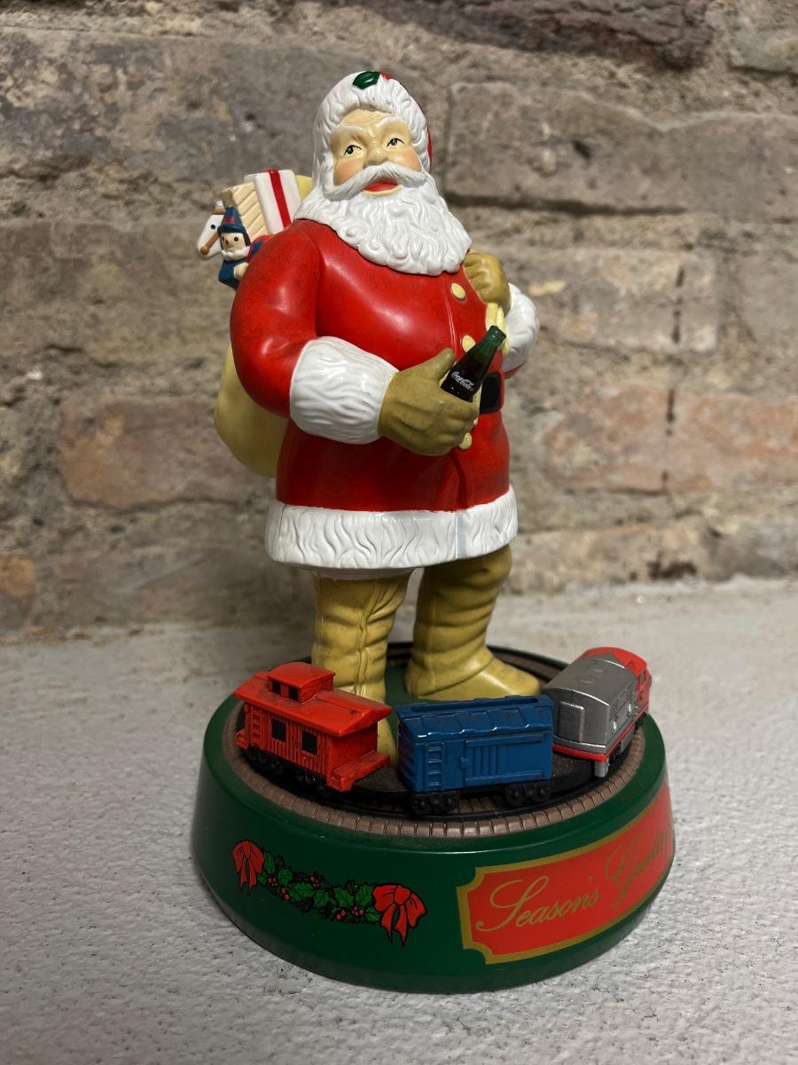 Watch Santa take a refreshing drink of Coke while you send the train around his feet