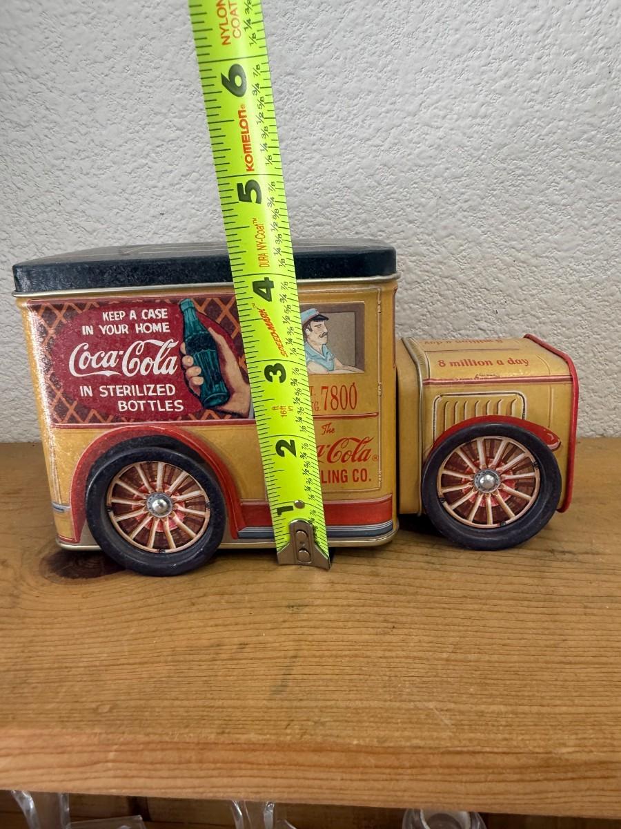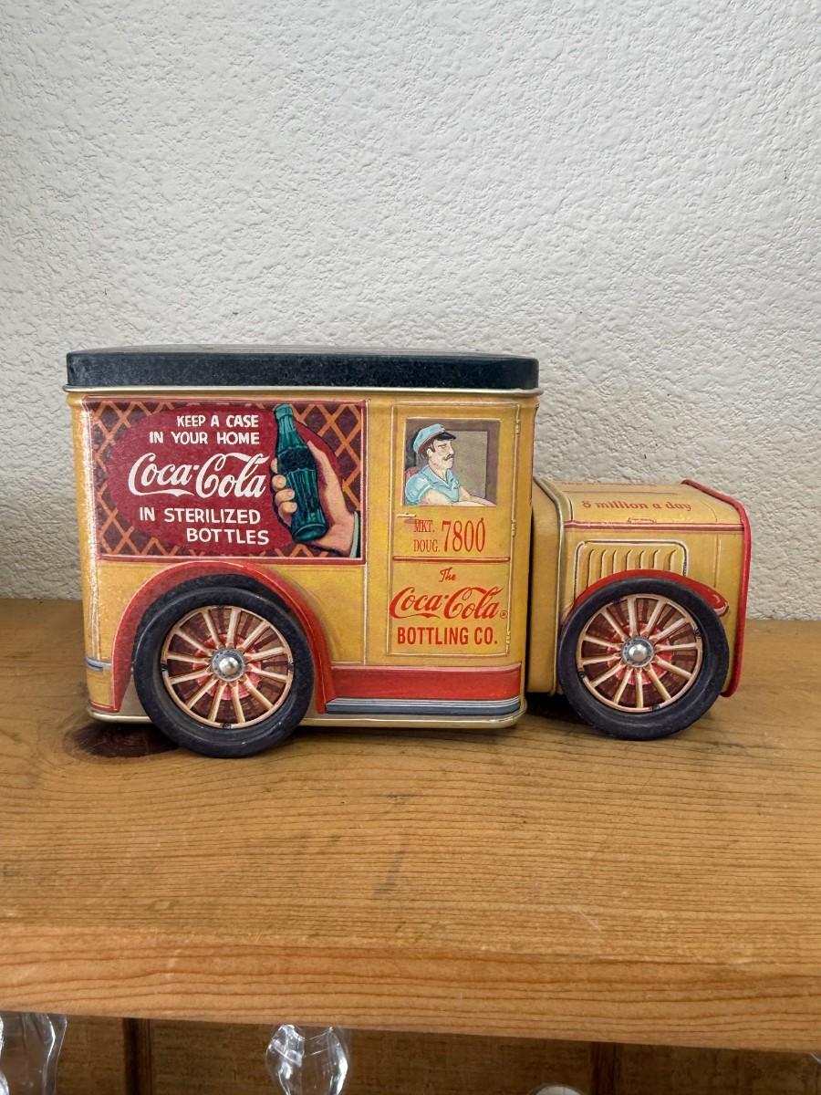 A fun and unique collector tin shaped like a Coca Cola delivery truck, perfect for storage or as a delightful decor piece for enthusiasts.