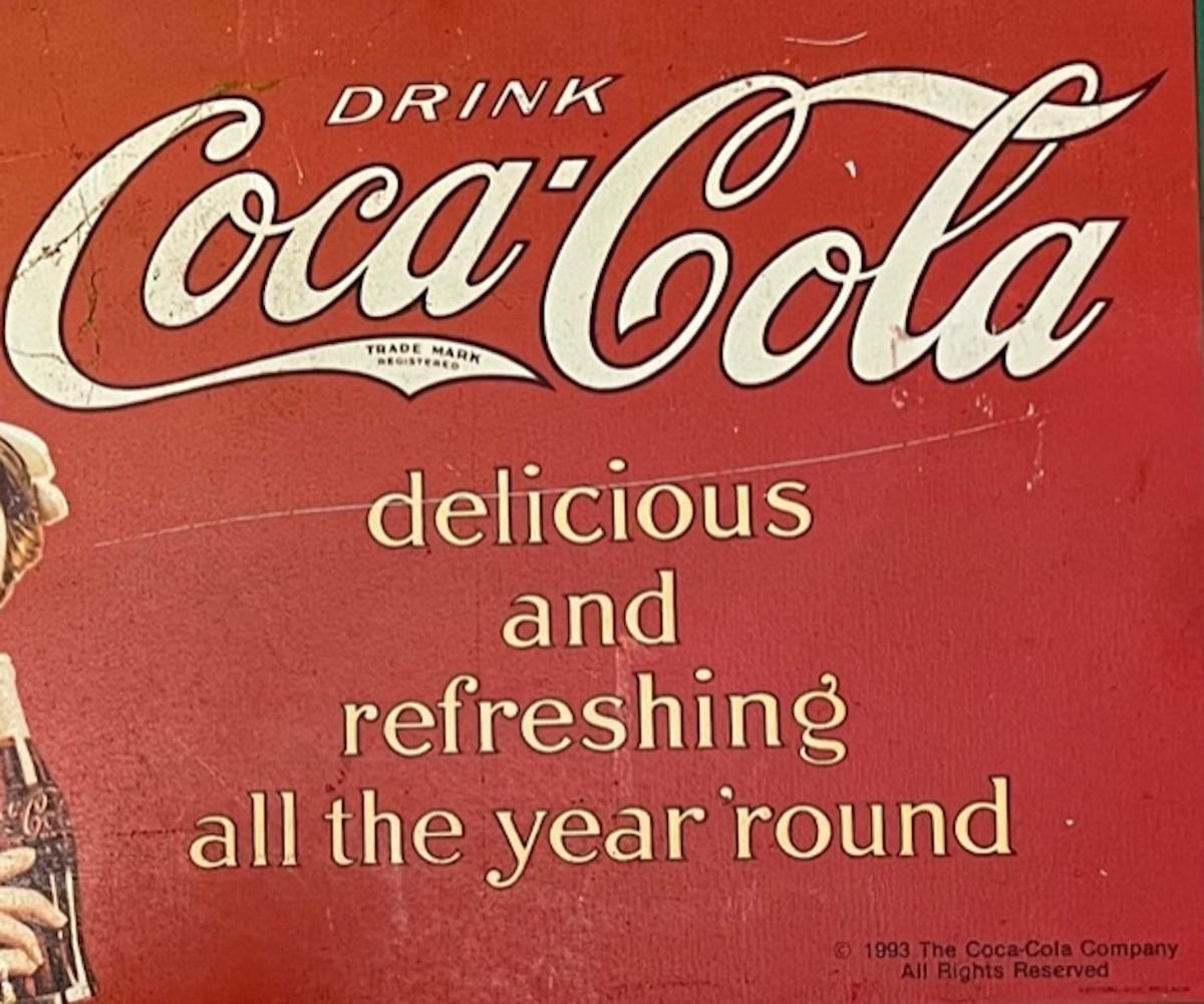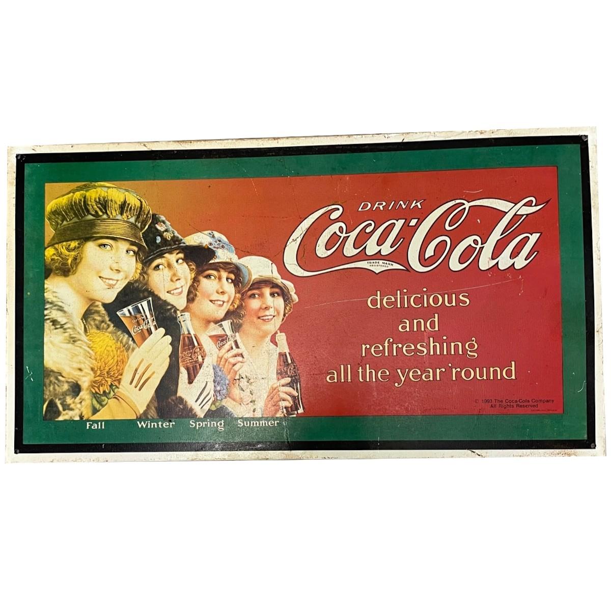 Description: Coca-Cola Advertising Sign. Measures approximately: 17 .5 X 9.5 Inches. Material : Metal.