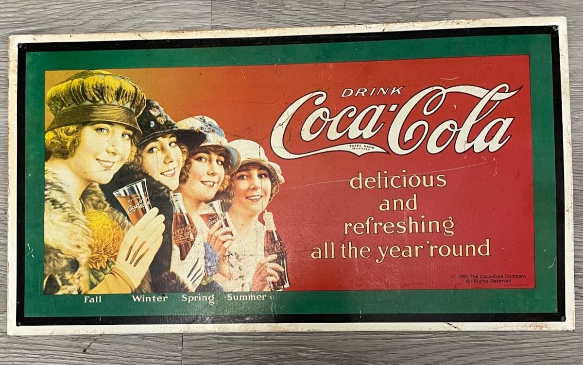 Description: Coca-Cola Advertising Sign. Measures approximately: 17 .5 X 9.5 Inches. Material : Metal.