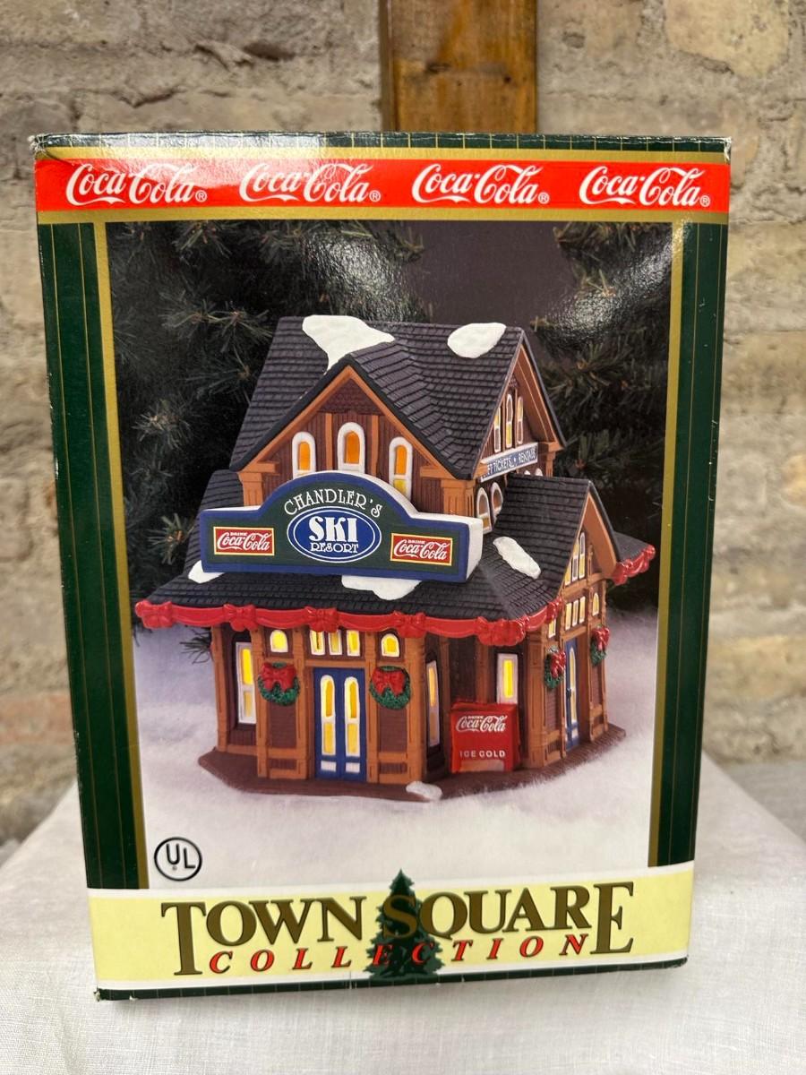 New in box. Coca-Cola Town Square Collection Chandler's Ski Lodge.