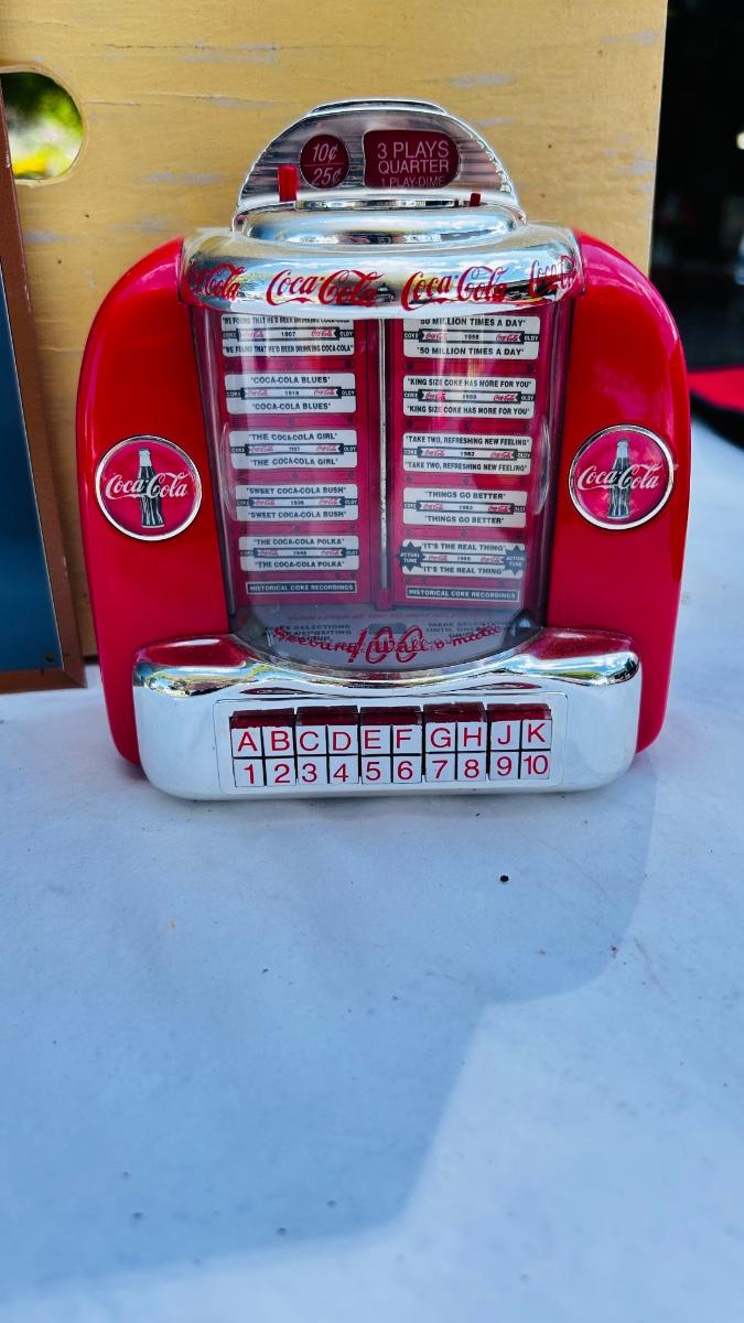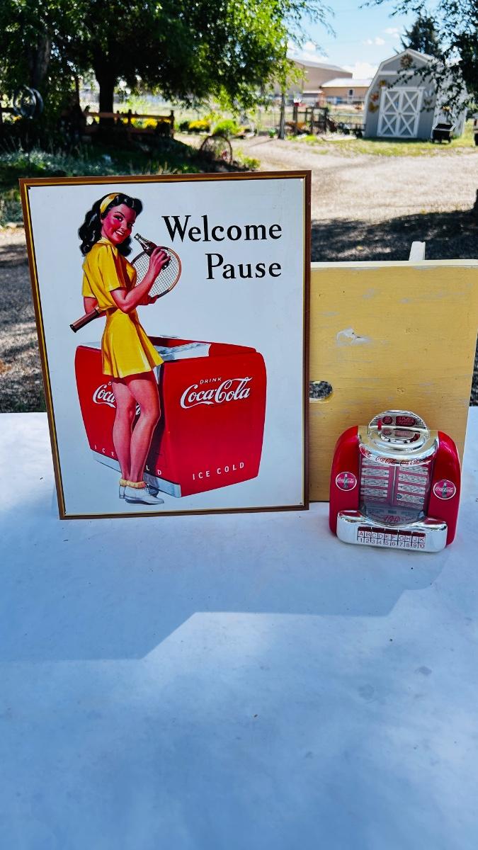 COCA-COLA JUKEBOX COIN BANK AND SIGN