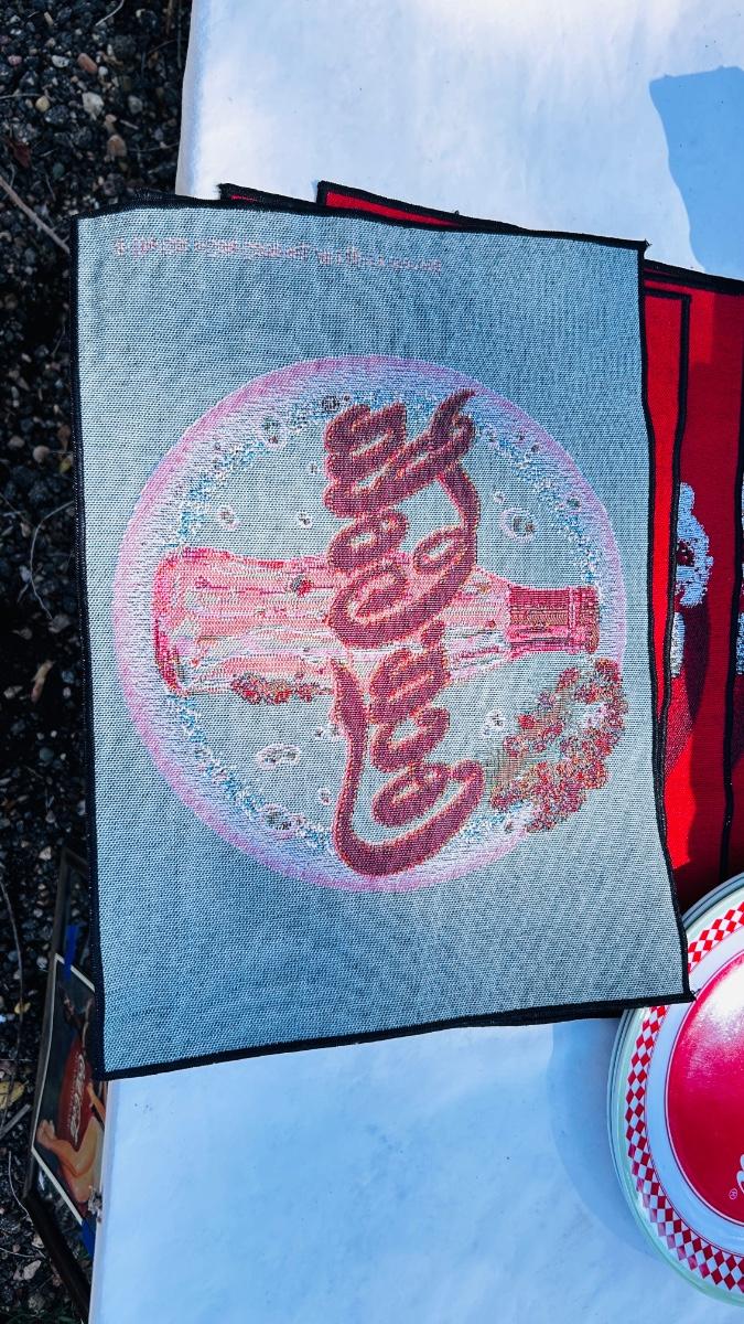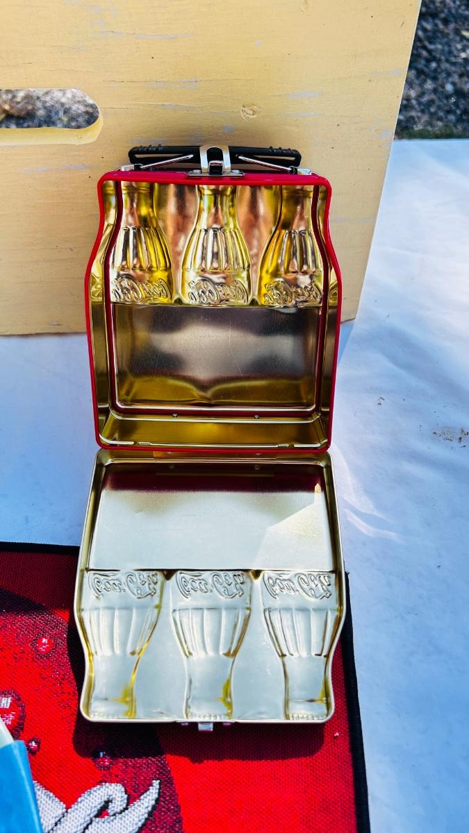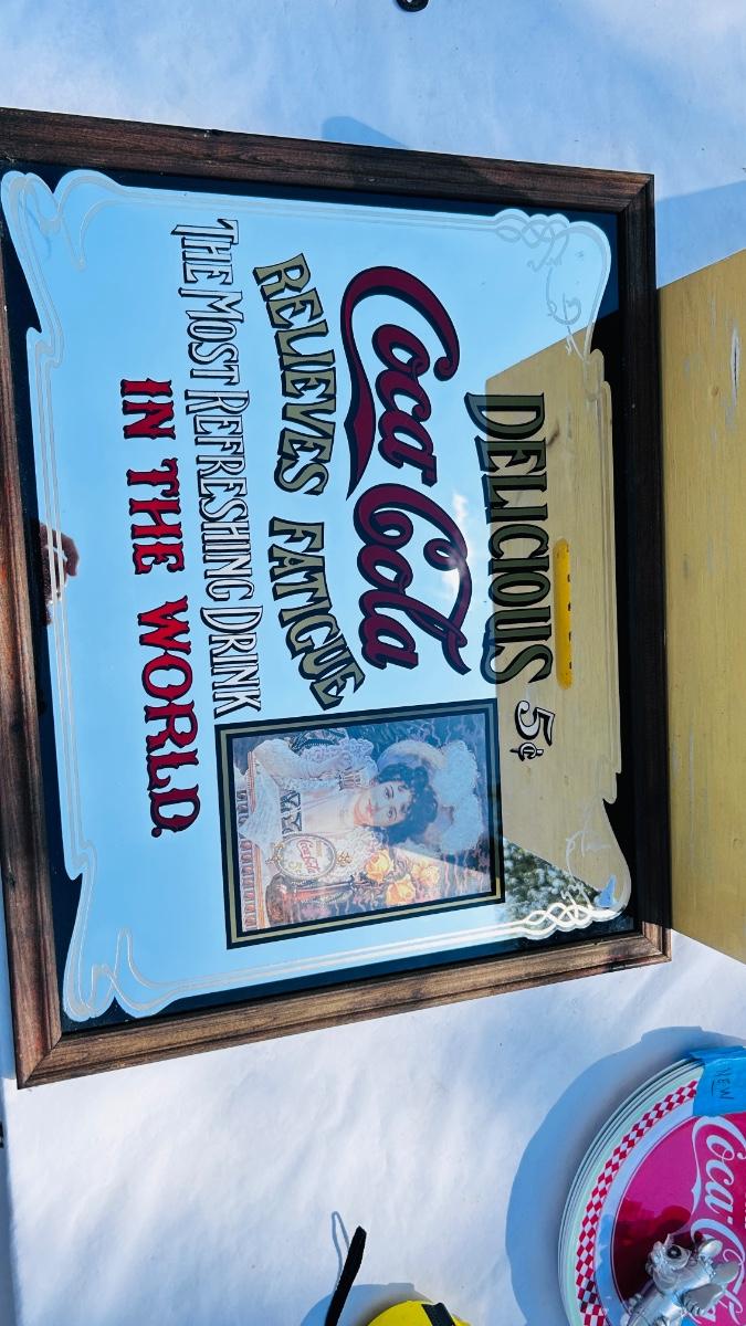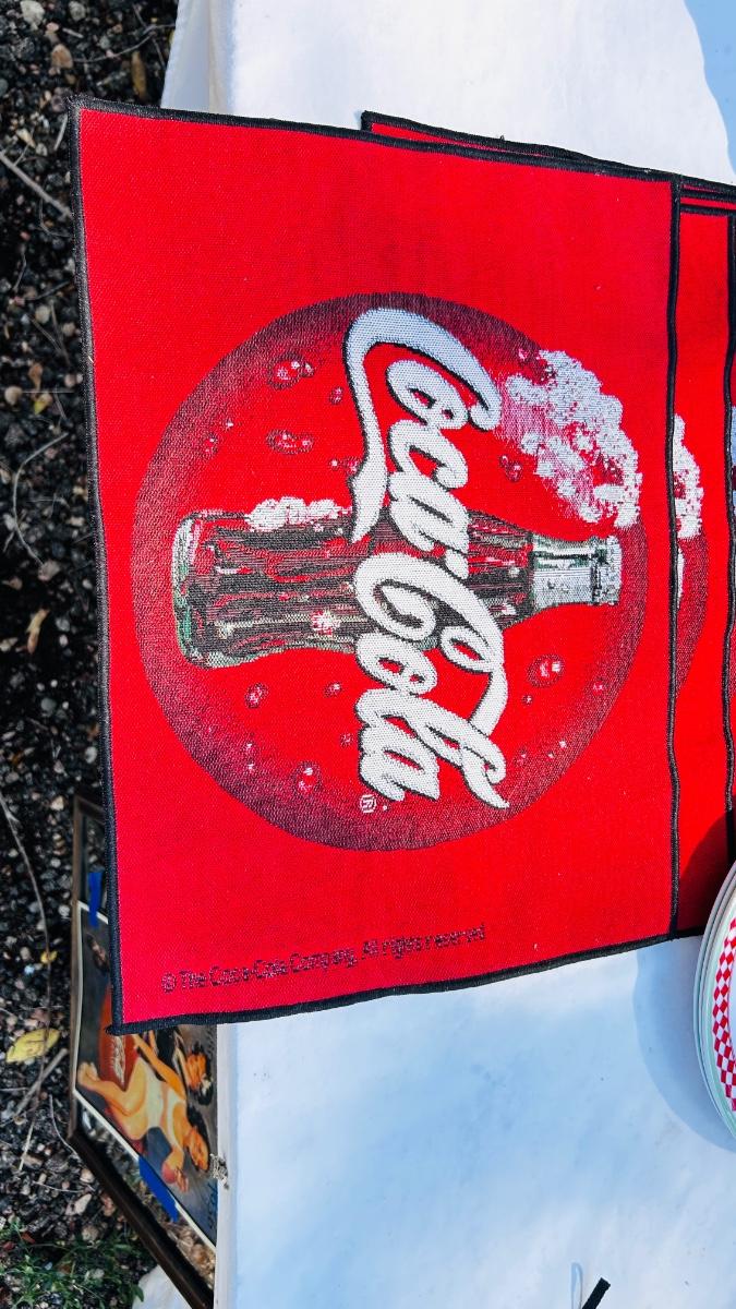 COCA-COLA PLACEMATS, PLASTIC PLATES, AND BOTTLE SHAPED TIN