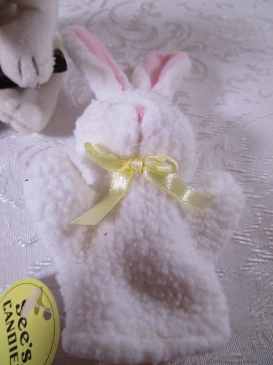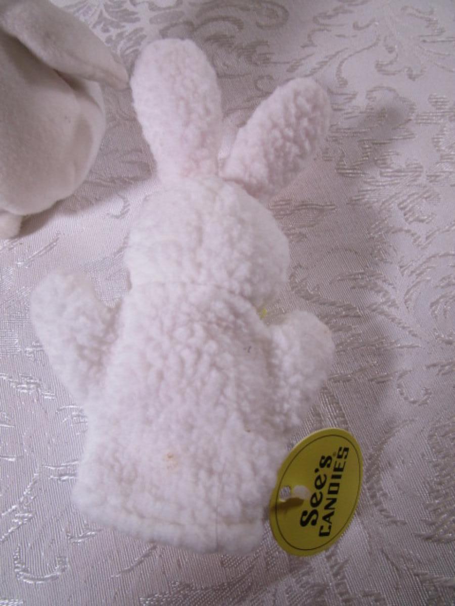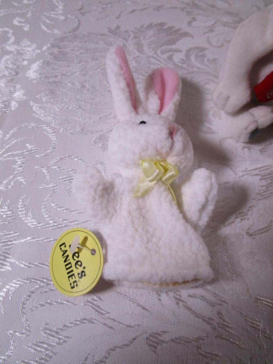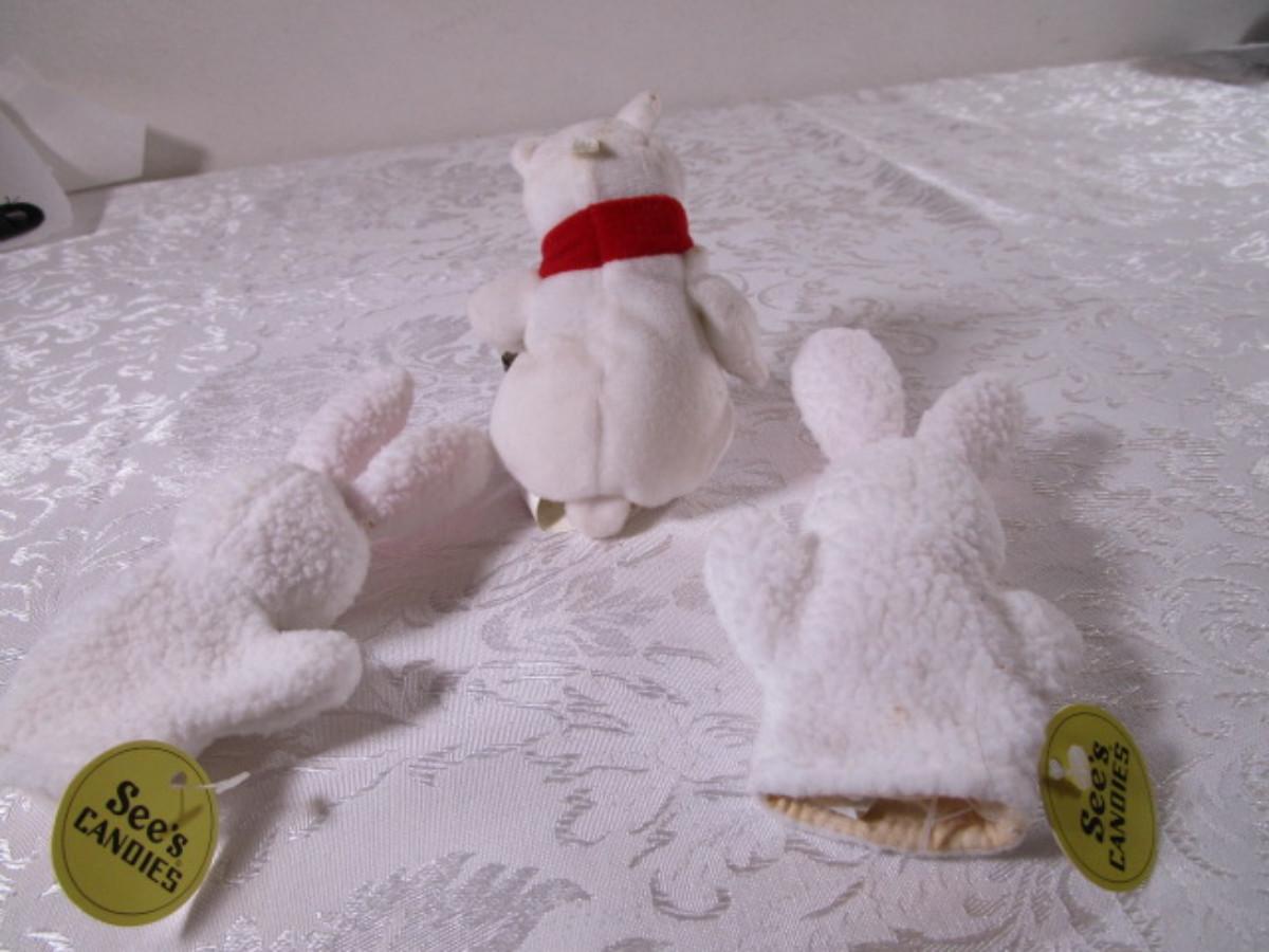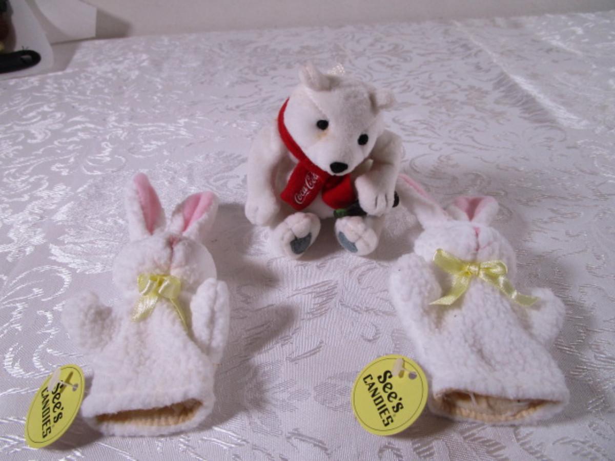 Coca-Cola polar bear, 2 See's candy bunny finger puppets