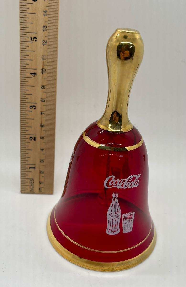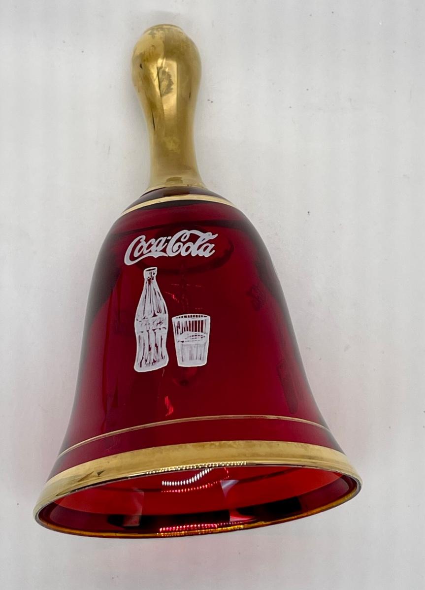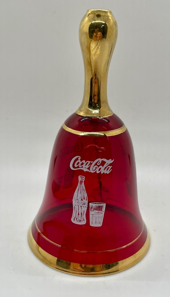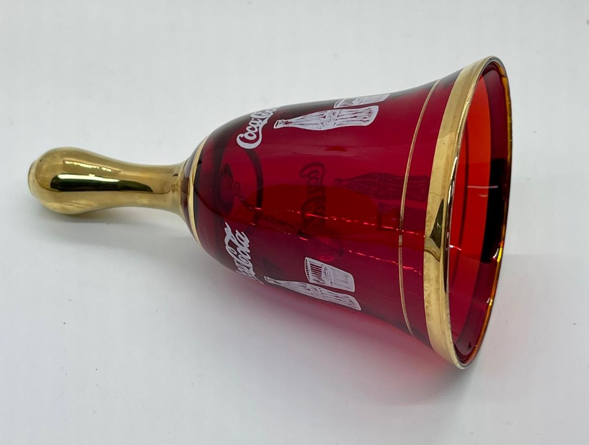 Coca-Cola Red and Gold Glass Bell with Logo Graphics