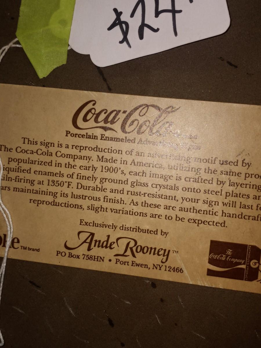 COCA-COLA ROUND SIGN ANDE ROONEY PORCELAIN