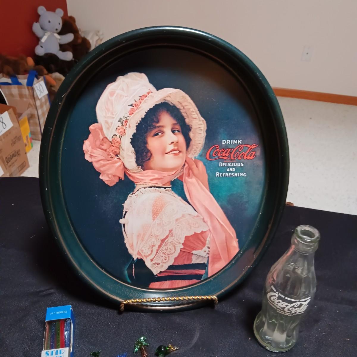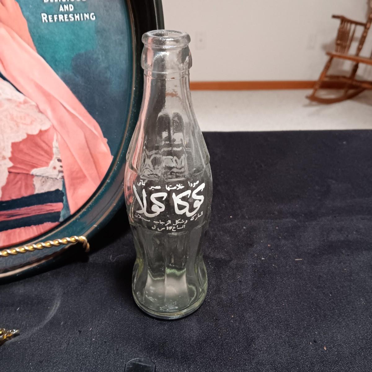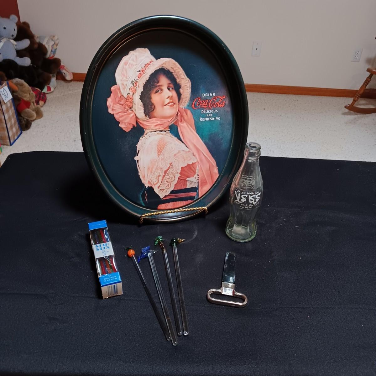 COCA-COLA TRAY AND BOTTLE FROM FOREIGN COUNTRY PLUS BARWARE