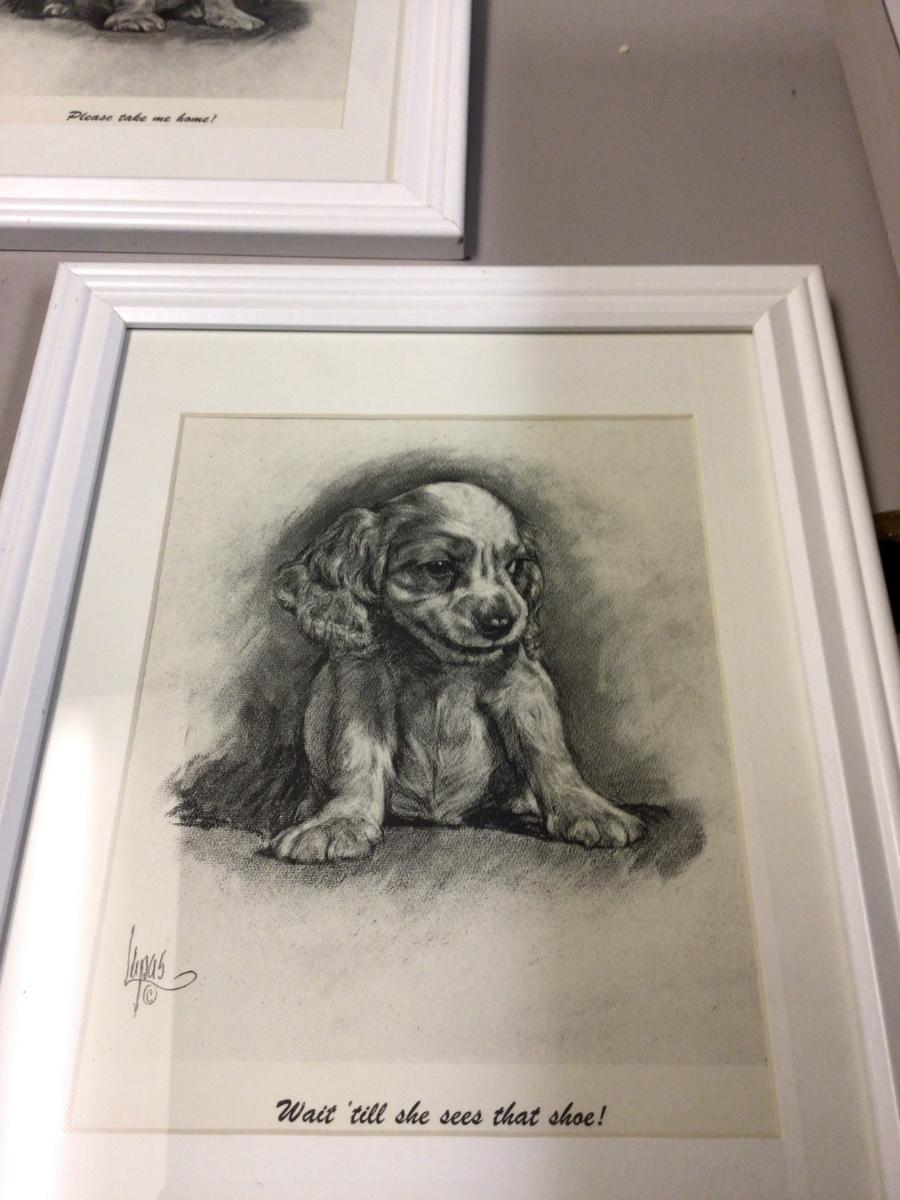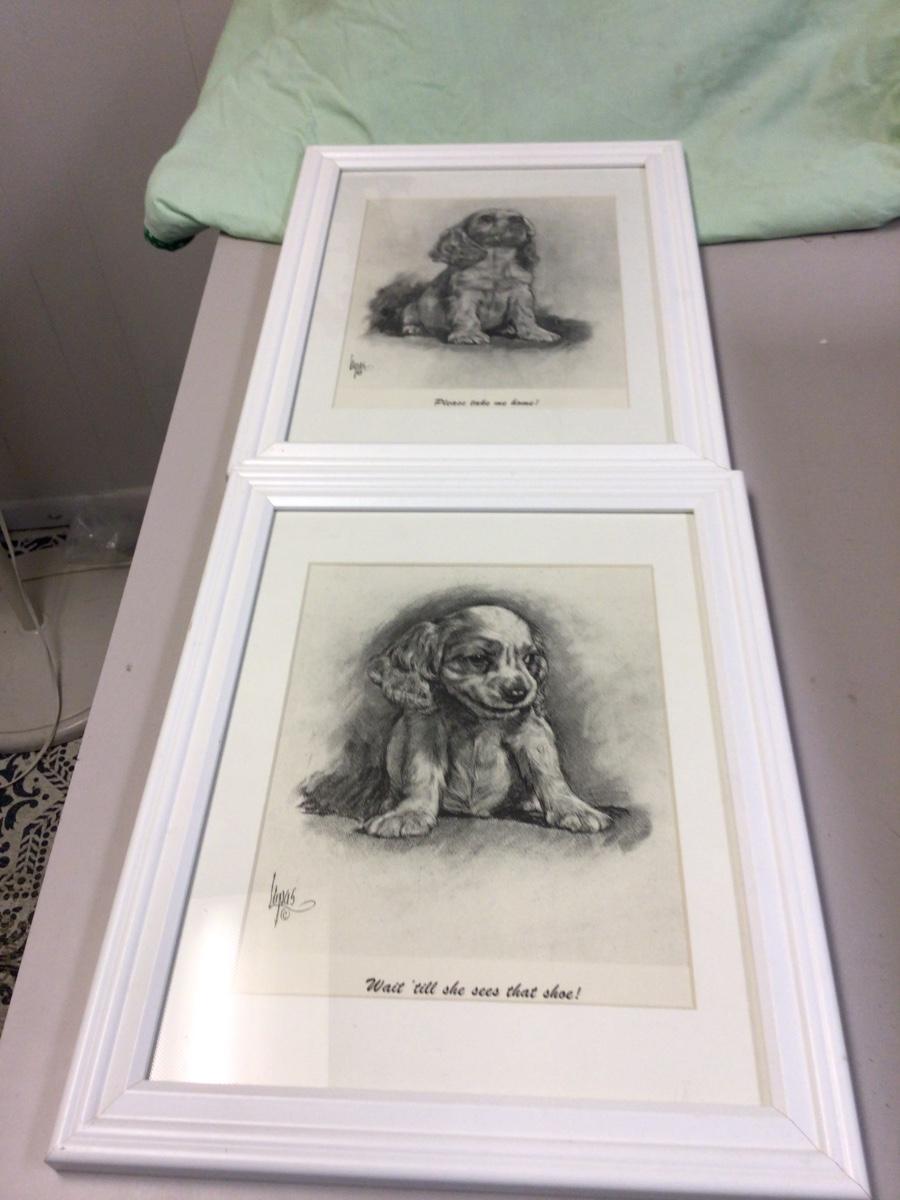 You get two pictures of cocker spaniel puppies. Please take me home and wait till you see the shoes. Great pictures.
