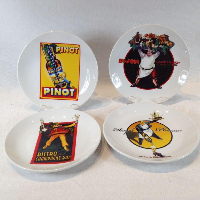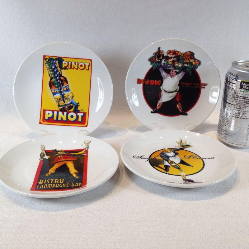 This is a group of 4 fun cocktail plates. Marked on back 2003 "Kentfields for Santa Barabara Ceramics Designs'. They are 6-inches in diameter. All are in very good condition and ready for your cheese and/or charcuterie board.