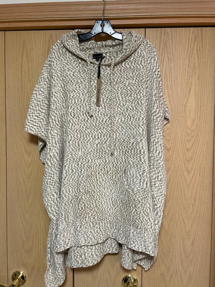 NWT Perfect for lounge wear or over leggings. Soft and oversized with front pouch, side slits and armholes. Mixed taupe/cream color.