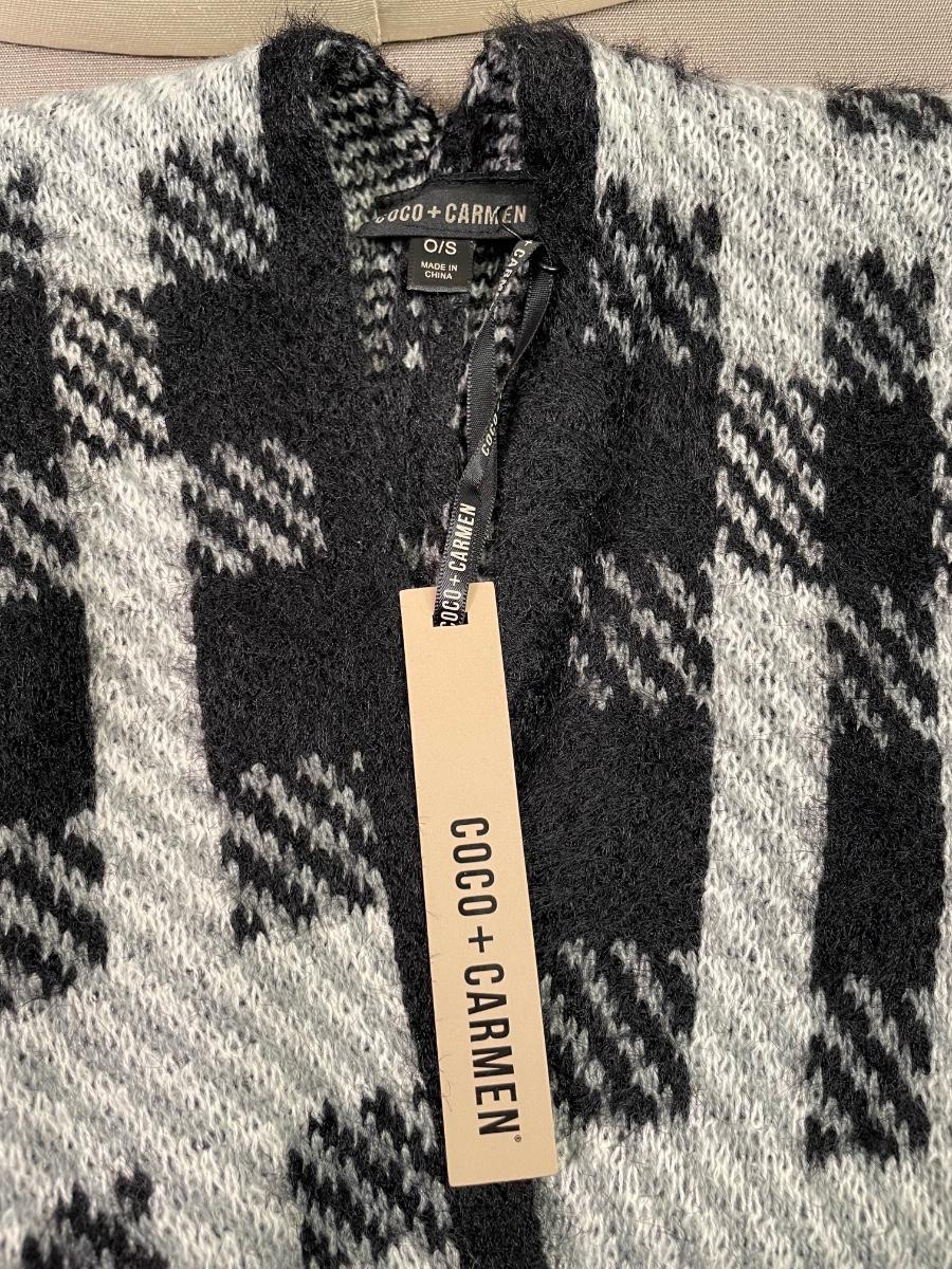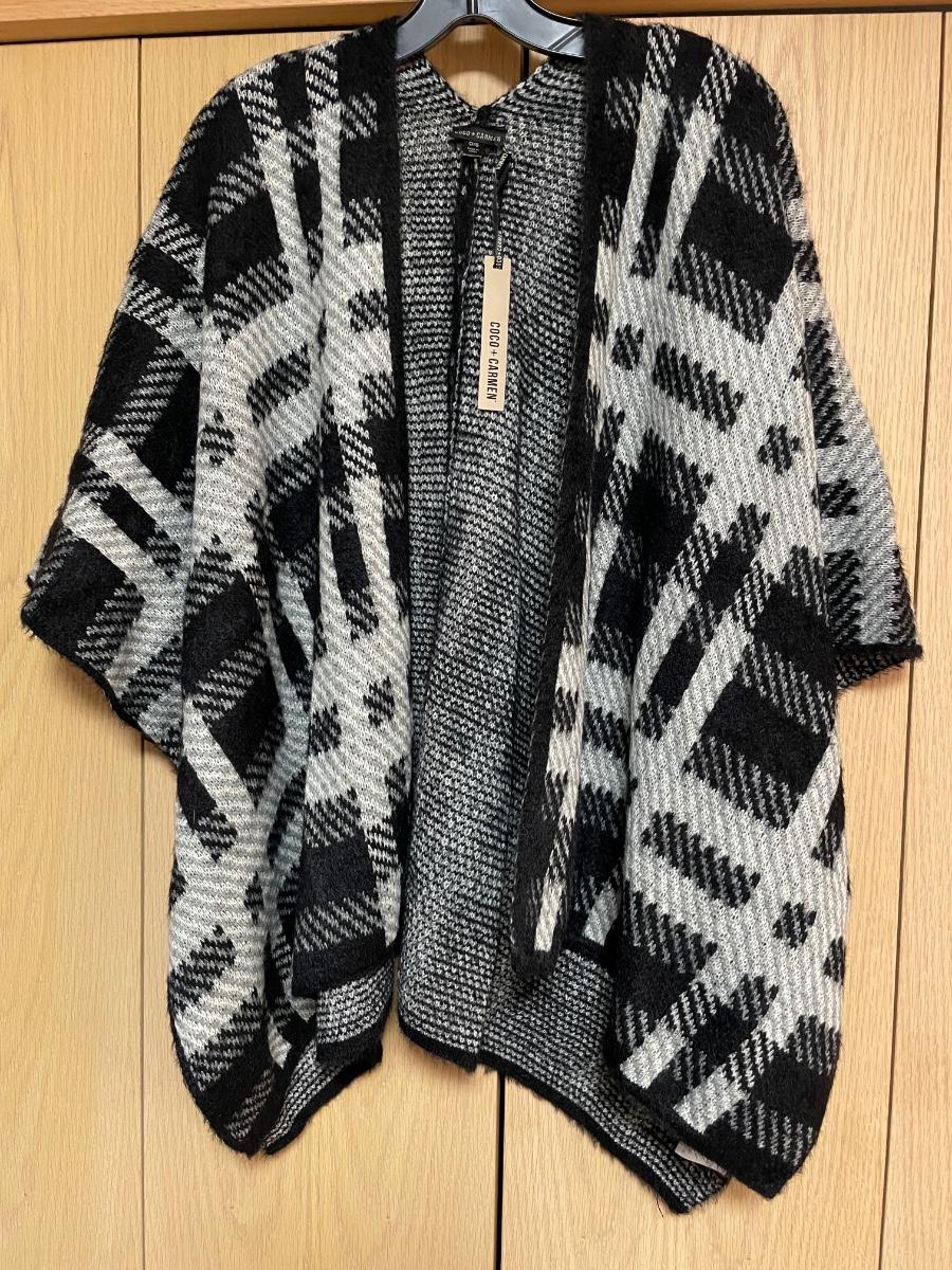 NWT black and grey wrap. One size fits most. Stitched arm holes keeps it from slipping off.
