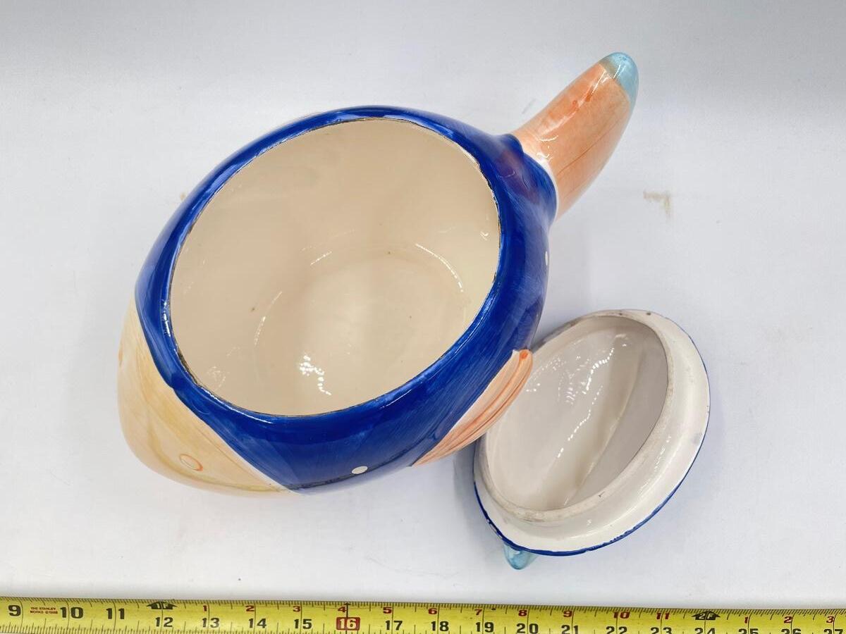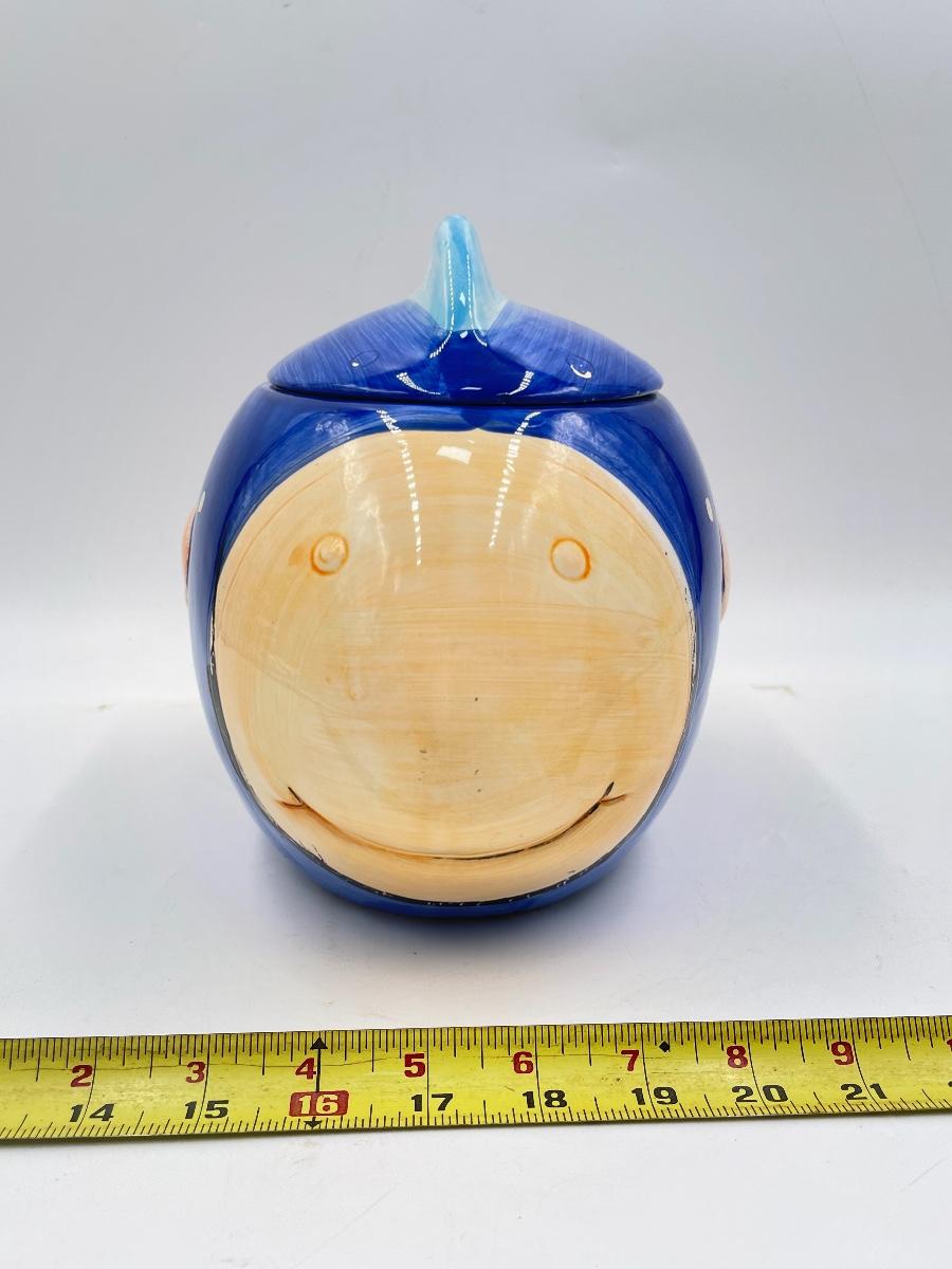 “COCO DOWLET” LARGE CERAMIC BLUE FISH COOKIE JAR