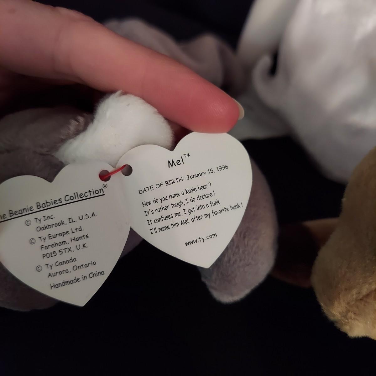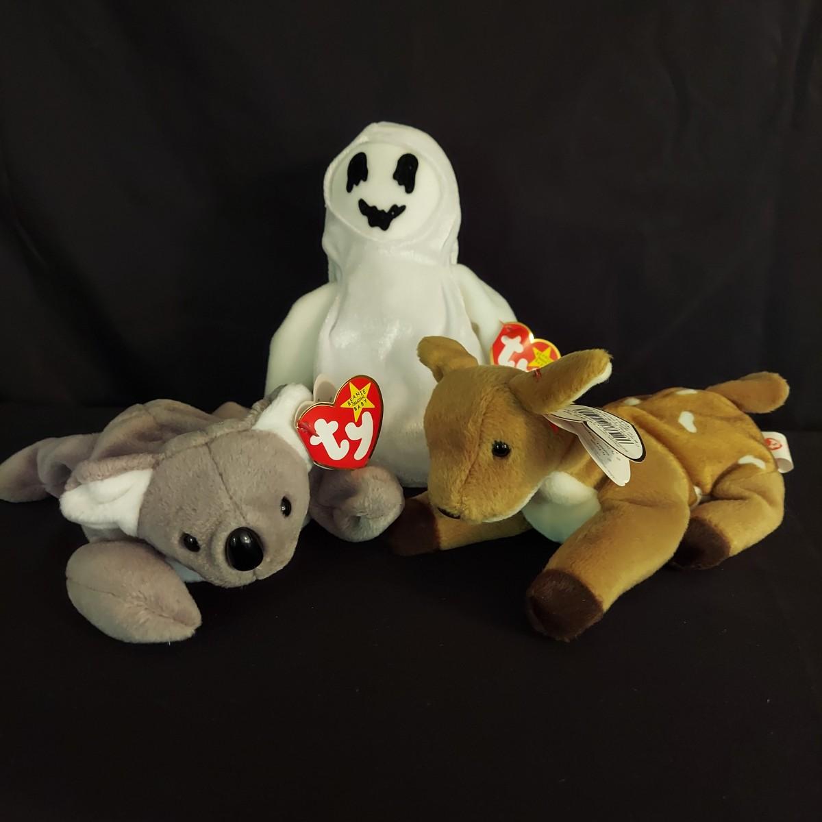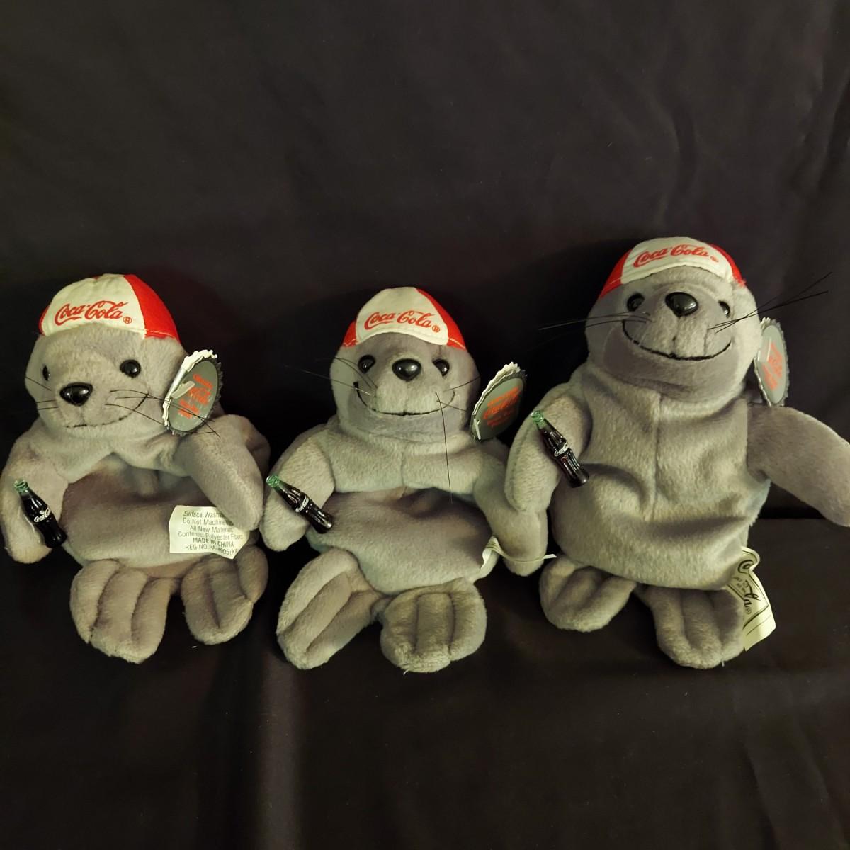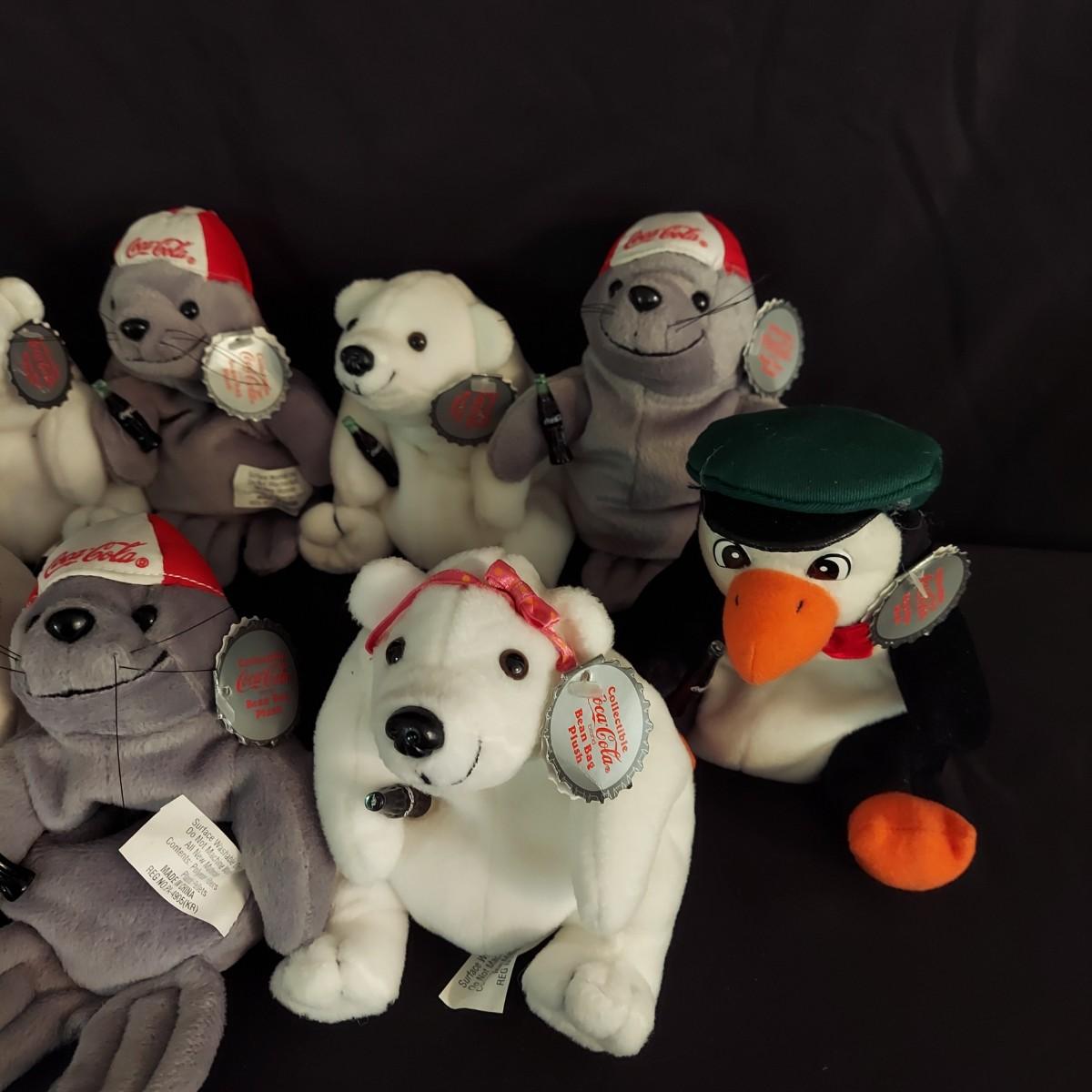Three Ty Beanie Babies. Mel the koala, Whisper the deer and Sheets the ghost. This lot also includes nine Coca Cola bean bag plushes. There are two penguins, three seals, four polar bears. Shipping available. Shipping can be costly. We suggest contacting our preferred local shipping provider, Postage Express, with dimensions and getting an estimate before bidding: (828) 670-5501or postageexpress@yahoo.com.