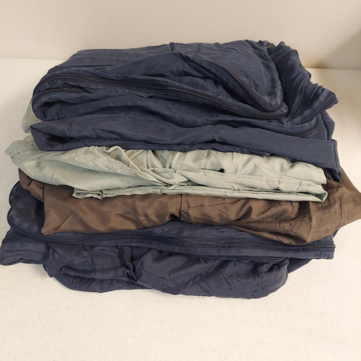 Lot includes four Cocoon brand sleeping bag liners for hiking and camping. They appear to be silk. Two have zippers. Shipping available