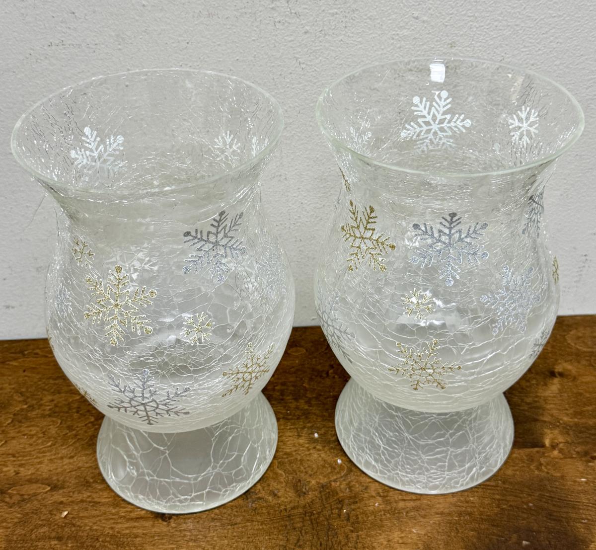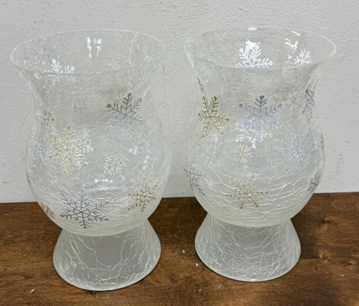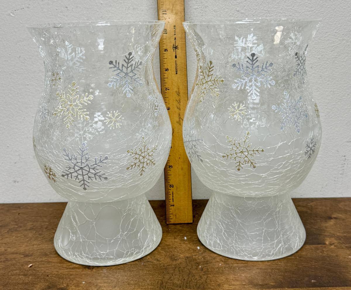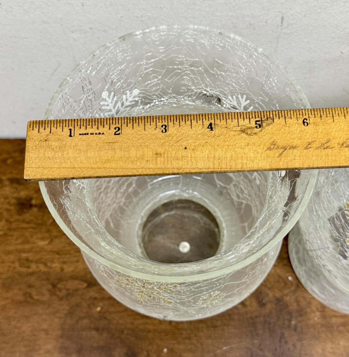 Pair of Frosted Crackle Glass Hurricane Style Candle Holders