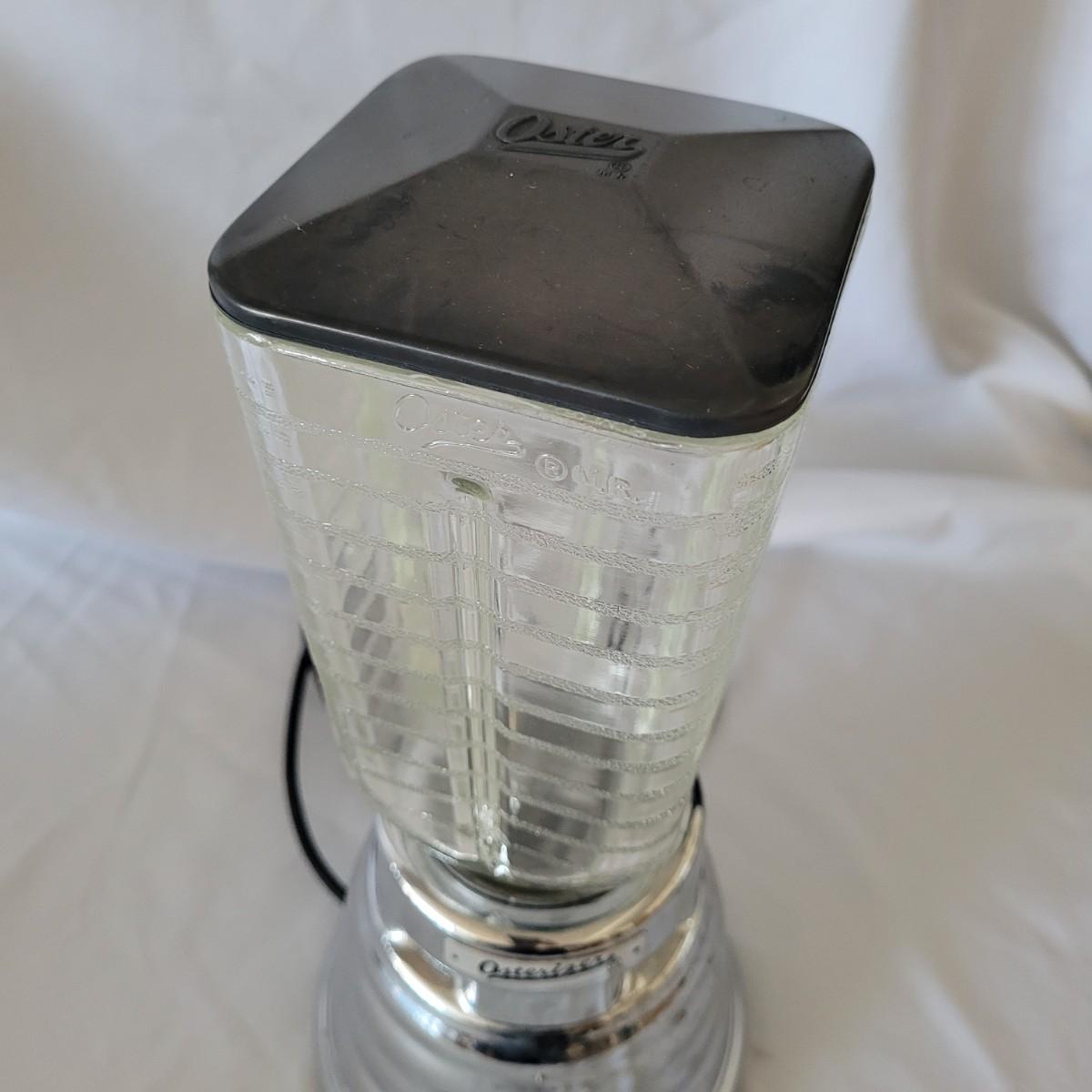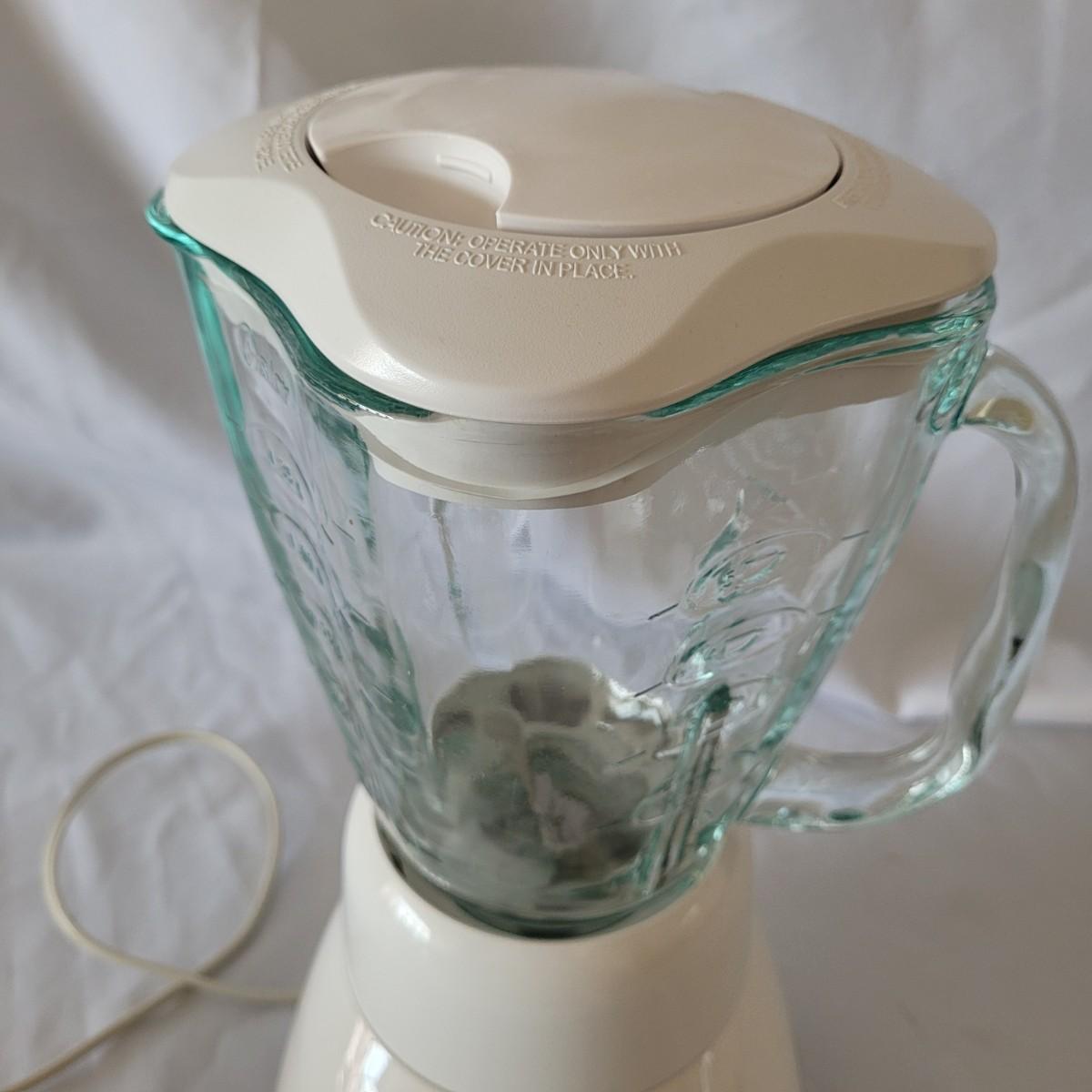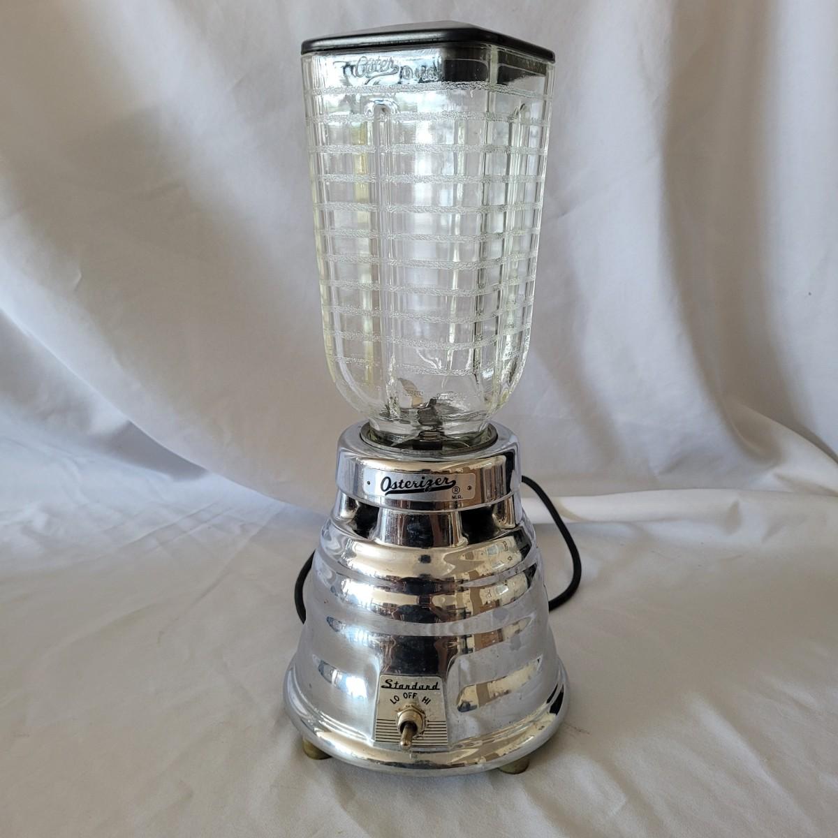 This lot includes four kitchen appliances. The first item is a Cuisinart brand Extreme Brew coffee maker. It measures 8" x 9" x 14"H and includes original instructions. It features many setting for creating a custom cup. There are also two blenders. Both Oster brand. One blender is older and possibly vintage in chrome. The other blender is a newer style 12 speed. The last item is a Krups electric juicer. It features a strainer and pitcher for juicing and straining. All items powered on when plugged in.